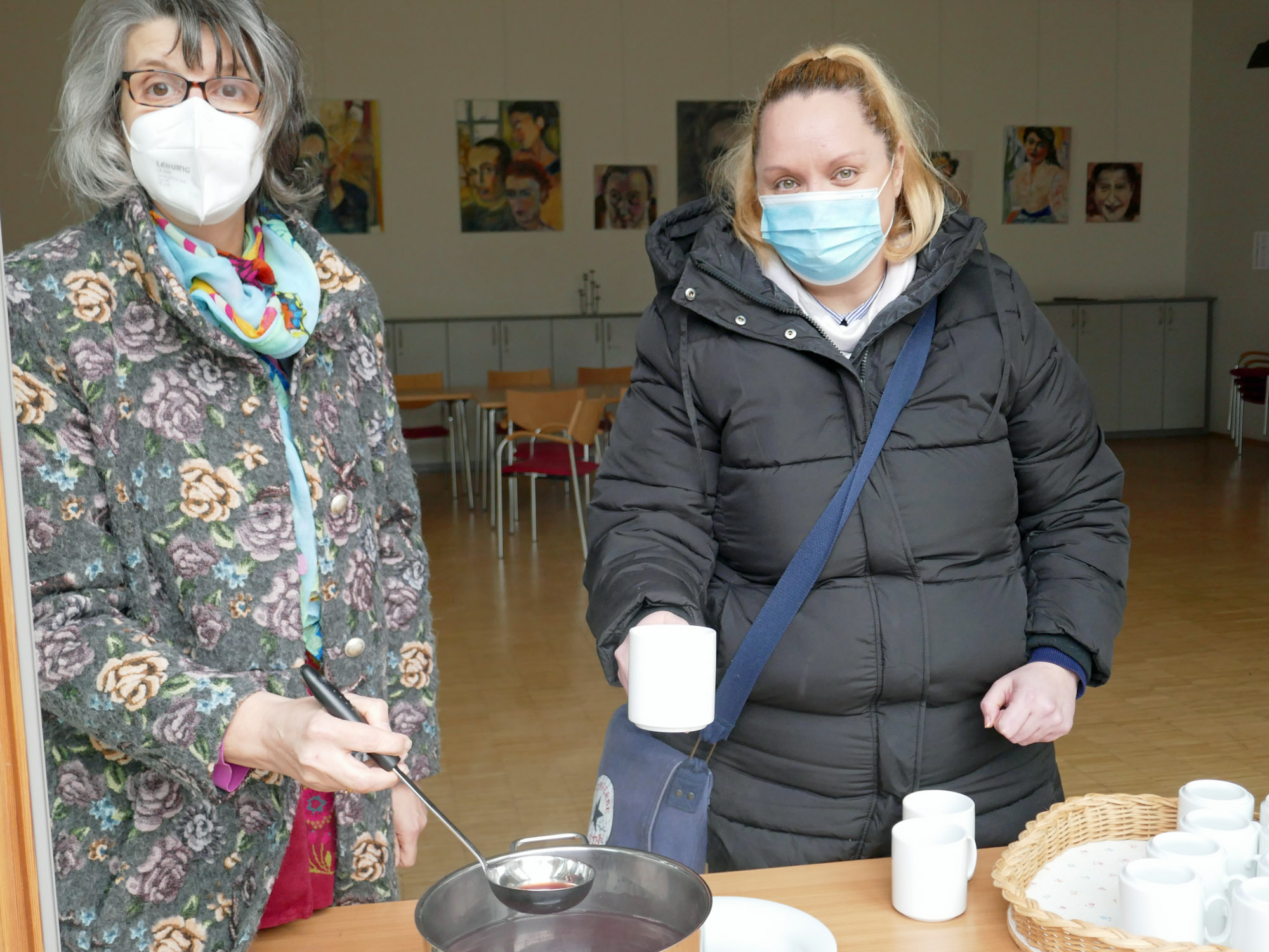 Im Anschluss trafen sich die Leiterinnen mit der Pädagogischen Leitung Silke Yavuz am Gemeindehaus. Dort gab es heißen Punsch, Plätzchen und die Gelegenheit zum Gespräch - und zur Mitnahme der Corona-Schnelltests für die jeweiligen Einrichtungen. Silke Yavuz überreichte auch den Weihnachtsgruß des Verbandsvorsitzenden, Pastor Burkhard Straeck, an die Einrichtungen, unter anderem pädagogisches Material zum Umgang mit dem Thema Tod und Sterben.