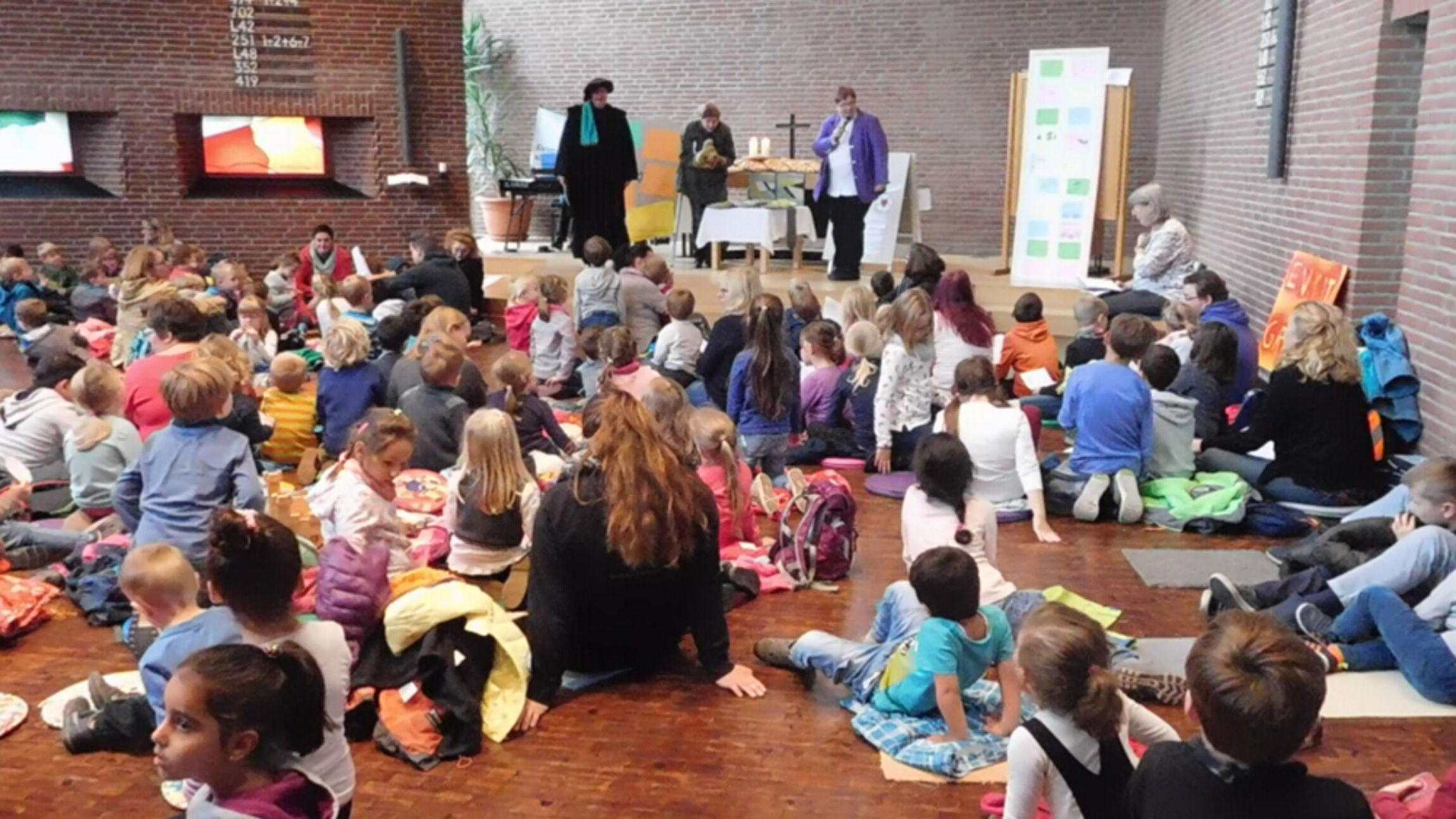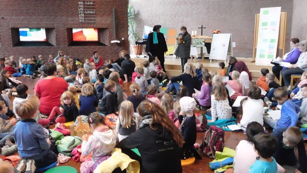 Eine kindgerechtere Inszenierung ist kaum vorstellbar, um Stationen aus dem Leben von Martin Luther – mit Beginn seiner Kindheit bis zum Anschlag der Thesen – anschaulich und greifbar dem sehr jungen Publikum nahe zu bringen. Es machte den besonderen Reiz dieses Gottesdienstes aus, dass sowohl historische als auch ernste Themen locker und mit leichter Hand dargestellt wurden: Anhand von unterschiedlichen Gegenständen aus der Zeit von Martin Luther wurde ein Lebensfaden gesponnen, der bei aller Heiterkeit auch nachdenkliche Gesichter hinterließ.