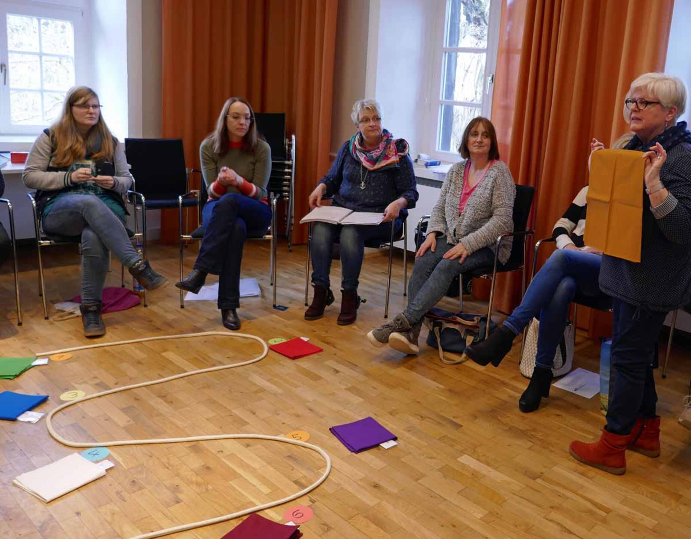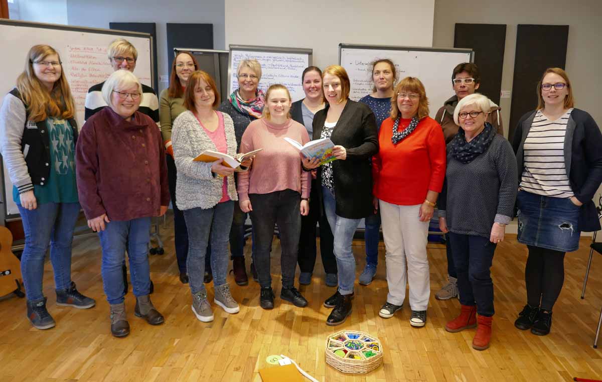 Der religionspädagogische Grundkurs wurde erstmals für Mitarbeitende des Kita-Verbandes angeboten. „Wir gehen damit auch gern vor Ort in die Verbände, wie jetzt für die Fortbildung nach Wennigsen“, erklärte Referentin Johanna Tschirner im Gespräch. Die verschiedenen Kursleitungen treffen sich jährlich zur Reflexion. So entwickelt sich ein lebendiges Konzept, das an die Fragestellungen aus der Praxis angepasst werden kann.