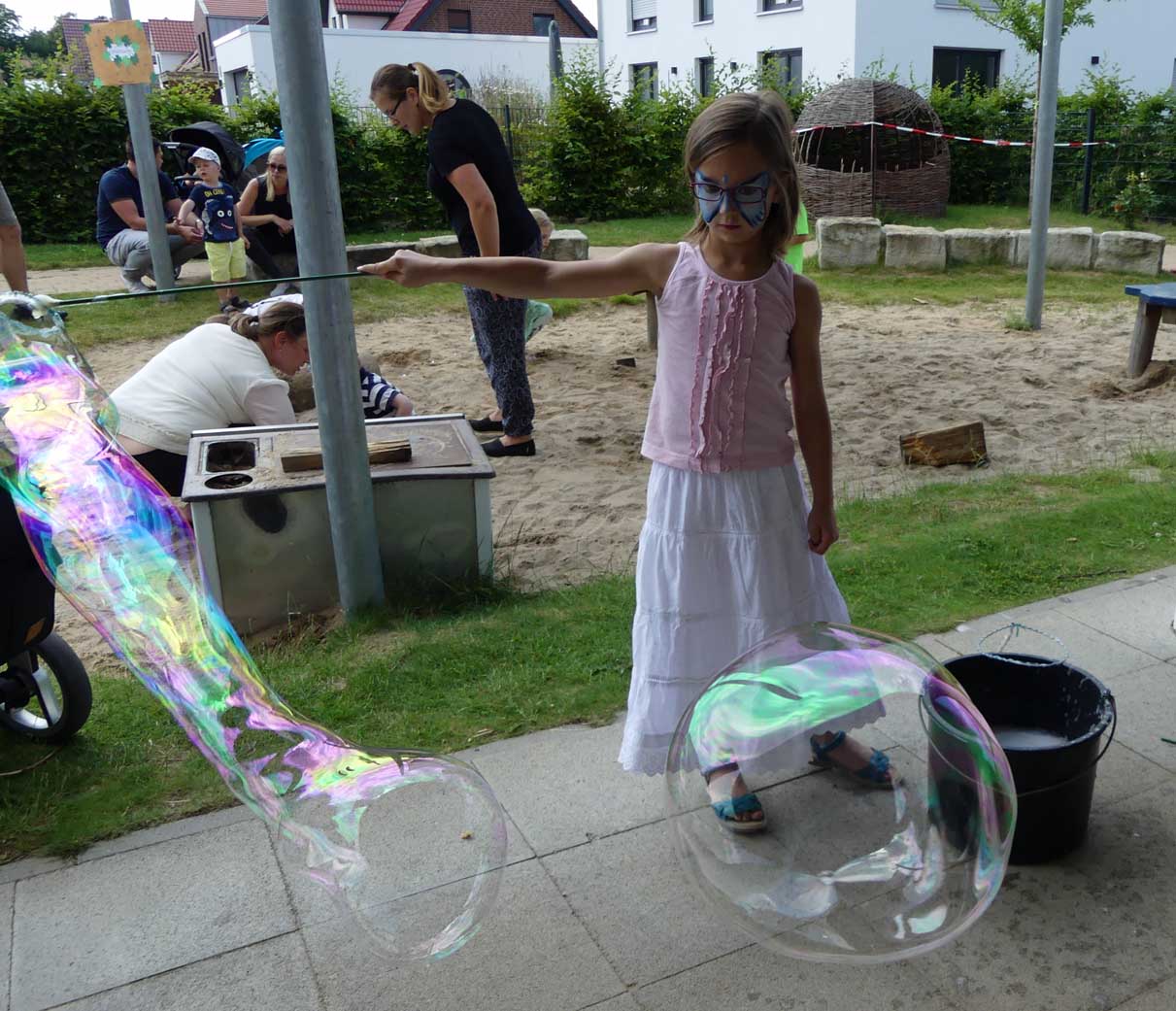 "Was für ein Glück, dass es euch gibt" - mit eine Andacht stimmte Pastor Wichard von Heyden in das Thema des Sommerfestes im Margarethen-Kindergarten in Gehrden ein. "Es ist ein schönes Thema, das 'Glück', das wir mit den Kindern vorbereitet haben. Als Überraschung gibt es zum Abschluss sogar ein kleines Musical der großen Kindergartenkindern zum Märchen von Hans im Glück", kündigte die Kita-Leiterin Sybille Rohrlapper an. Davor erlebten die vielen Gäste ein fröhliches Fest am Sommeranfang - mit kreativen Mitmachaktionen rund um das Thema. So konnten unter anderem Glückssymbole gefilzt werden oder die Gäste konnten sich fotografieren lassen - passend mit Schornsteinfegerhut auf dem Kopf - , an anderer Stelle wurden Riesenseifenblasen mit viel Glück und Geschick hergestellt. Und zur besonderen Freude der Kinder stand ein Eiswagen vor dem Kindergarten, aus dem heraus leckeres Eis verkauft wurde.