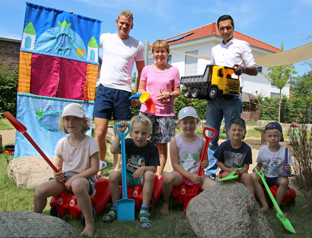 Im Handumdrehen verwandelt sich eine offen Tür mit dem "Türtheater" in eine Bühne für schauspielerische Talente. Auf den Bobbycars kann die eine oder andere Runde auf dem Außengelände des Margarethen-Kindergartens in Gehrden gedreht werden. Und mit den Kipplastern transportieren die Kinder Sand und anderes von A nach B. "Wir freuen uns sehr über die Spende der Sparkasse Hannover in Höhe von bis zu 500 Euro. Nach unseren eigenen Ideen konnten wir das robuste Spielzeug für drinnen und draußen einkaufen", erklärt die Kita-Leiterin Sybille Rohrlapper. Bei einem Besuch im Kindergarten konnte Andria Orsulic, der Leiter des Gehrdener Beratungscenters der Sparkasse Hannover, davon überzeugen, dass die Spende gut angekommen ist - die Kinder finden das Spielzeug auf jeden Fall "klasse!".