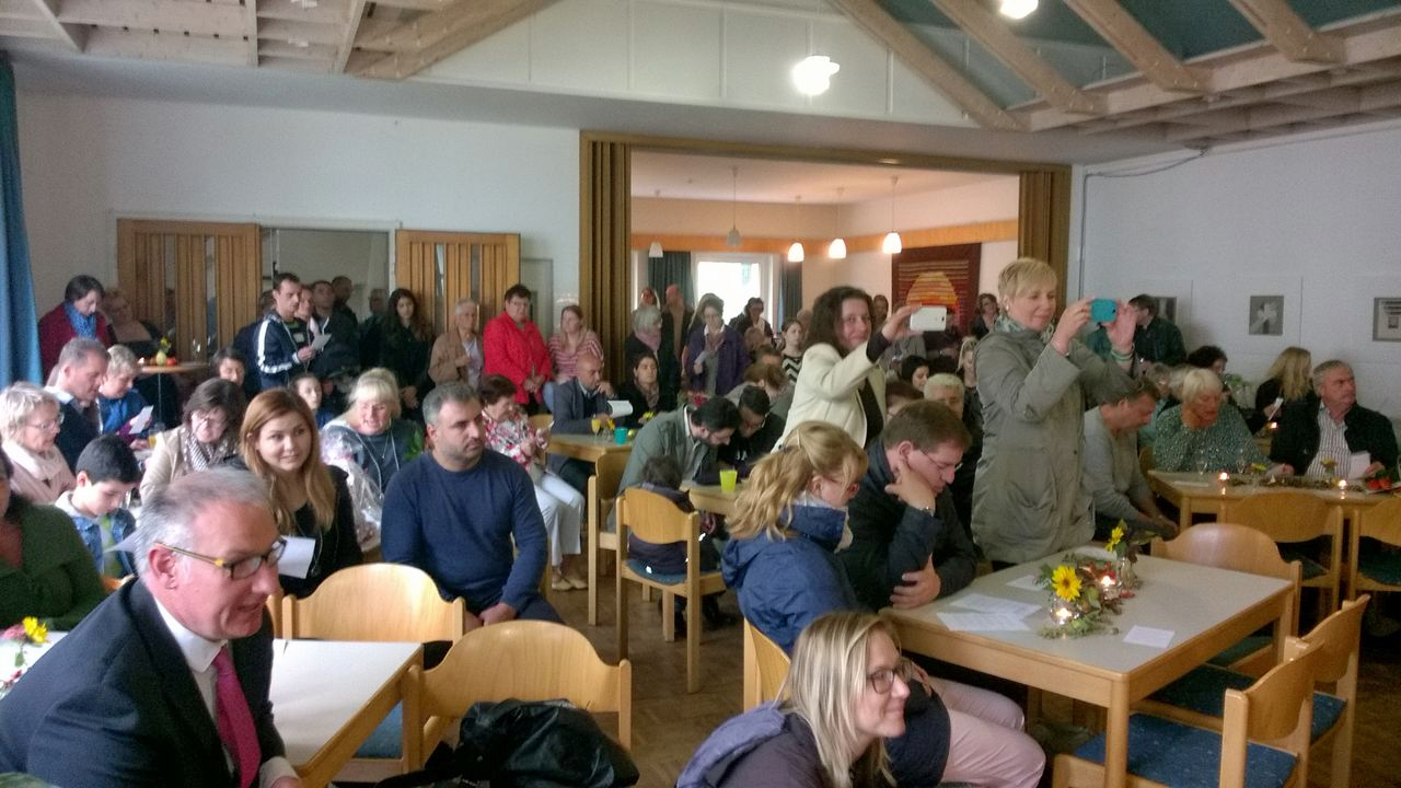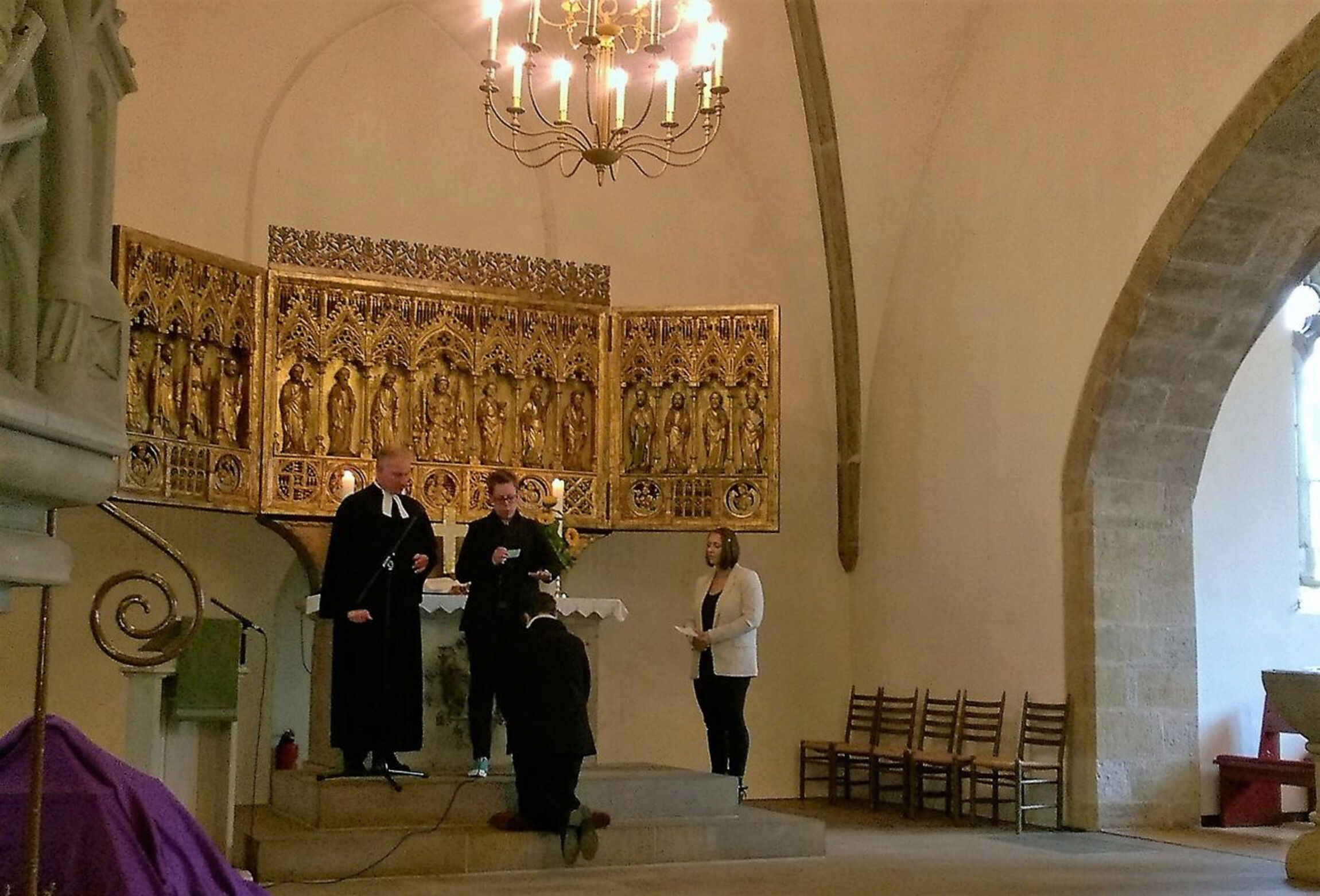 In der spätgotischen Kirche, deren Bänke im Mittelschiff kaum noch Platz für weitere Gäste ließen, hatten sich Andreas-Raben mit Eltern und Geschwistern eingefunden. Ehemalige Kindergartenkinder waren gekommen, die heute oftmals in der Schule durch ihre Sozialkompetenz positiv auffallen sowie noch ältere Raben, inzwischen junge Eltern, deren Kinder ebenfalls unter Monika Wolters Obhut, so eine vierfache Mutter bewundernd, "weder über- noch unterfordert werden".