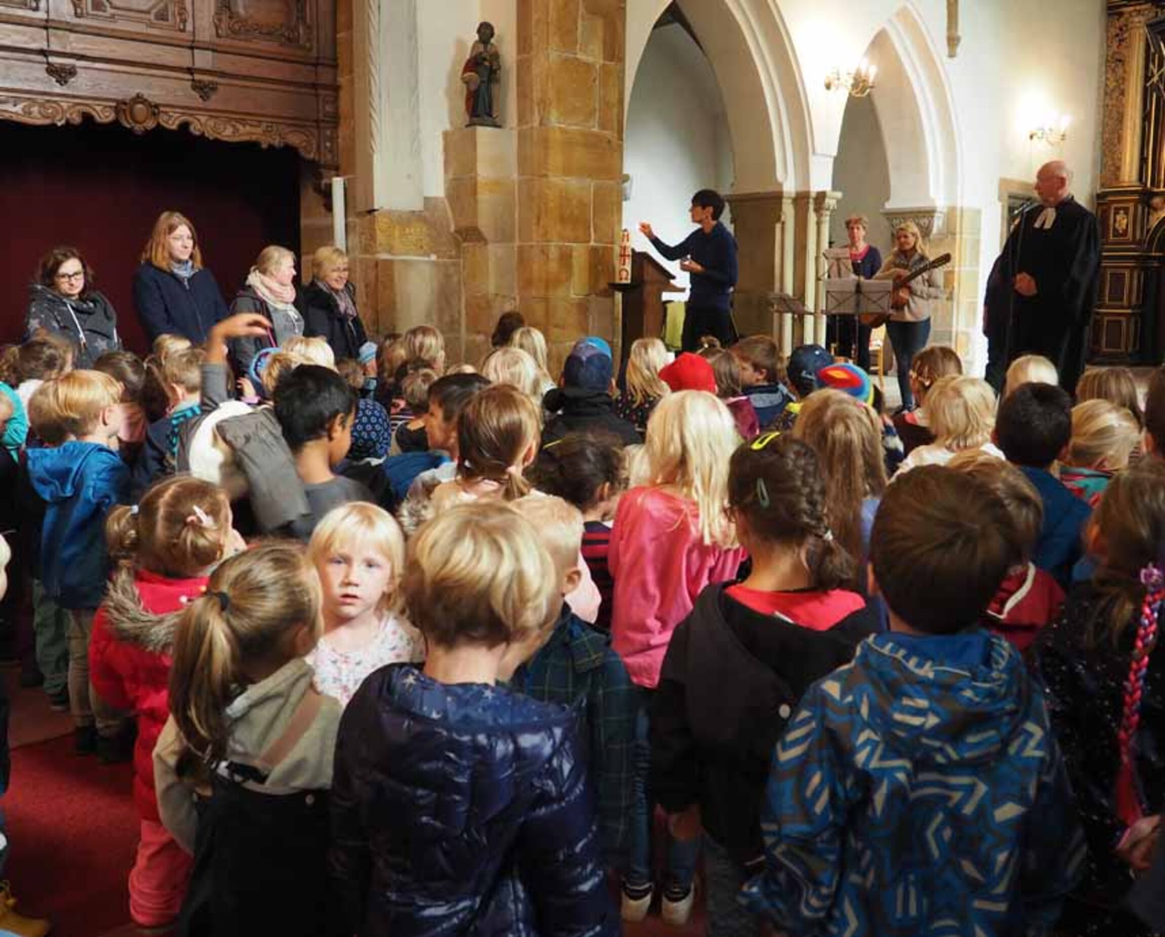 Die Rechte von Kindern zu stärken und zu unterstreichen - zum Beispiel das Recht, frei zu lernen - ist das Ziel des Weltkindertages am 20. September, der an die Kinderrechte erinnert. Den Tag nahmen die Kindertagesstätten und ersten Klassen der Wennigser Grundschule zum Anlass, einen fröhlichen Gottesdienst in der Klosterkirche zu feiern. Eingeladen hatte dazu das Team des Emmaus-Kindergartens aus Wennigsen. Die letzten Gottesdienste am Weltkindertag liegen jetzt schon 15 Jahre zurück, deshalb war die Feier für die Meisten in der Kirche eine Premiere. Pastor Carsten Wedemeyer begrüßte die Kinder in der Kirche noch in seiner Alltagskleidung. "So kennt ihr mich, wenn ich euch in der Kita besuche. Aber jetzt ziehe ich den Talar an, weil wir hier einen Gottesdienst feiern", erklärte er und fragte später die Kinder: "Woher erfahrt ihr was von Gott?". Zahlreiche Antworten hatten die Erzieherinnen schon auf Papier gesammelt: in der Kirche, von Oma und Opa, aus der Kinderbibel, von den Eltern oder auch aus dem Kindergarten lasen sie Antworten vor. Später spielten Ortrud Ahrens und Stephanie Tobschirbel eine Geschichte aus der Bibel vor, in der es auch darum ging, dass ein Mensch etwas wissen wollte von Gott, etwas erklärt haben wollte und dann auf seinem Weg einen der Jünger Jesu traf. Dieser Jünger Philippus nahm sich Zeit und erzählte dem Finanzminister aus Afrika von seinem Glauben. Schließlich ließ sich der Afrikaner in einem nahen Fluss taufen. Mit einem Vater Unser und dem Segen endete die kindgemäße Feier mit vielen Bewegungsliedern in der Kirche.