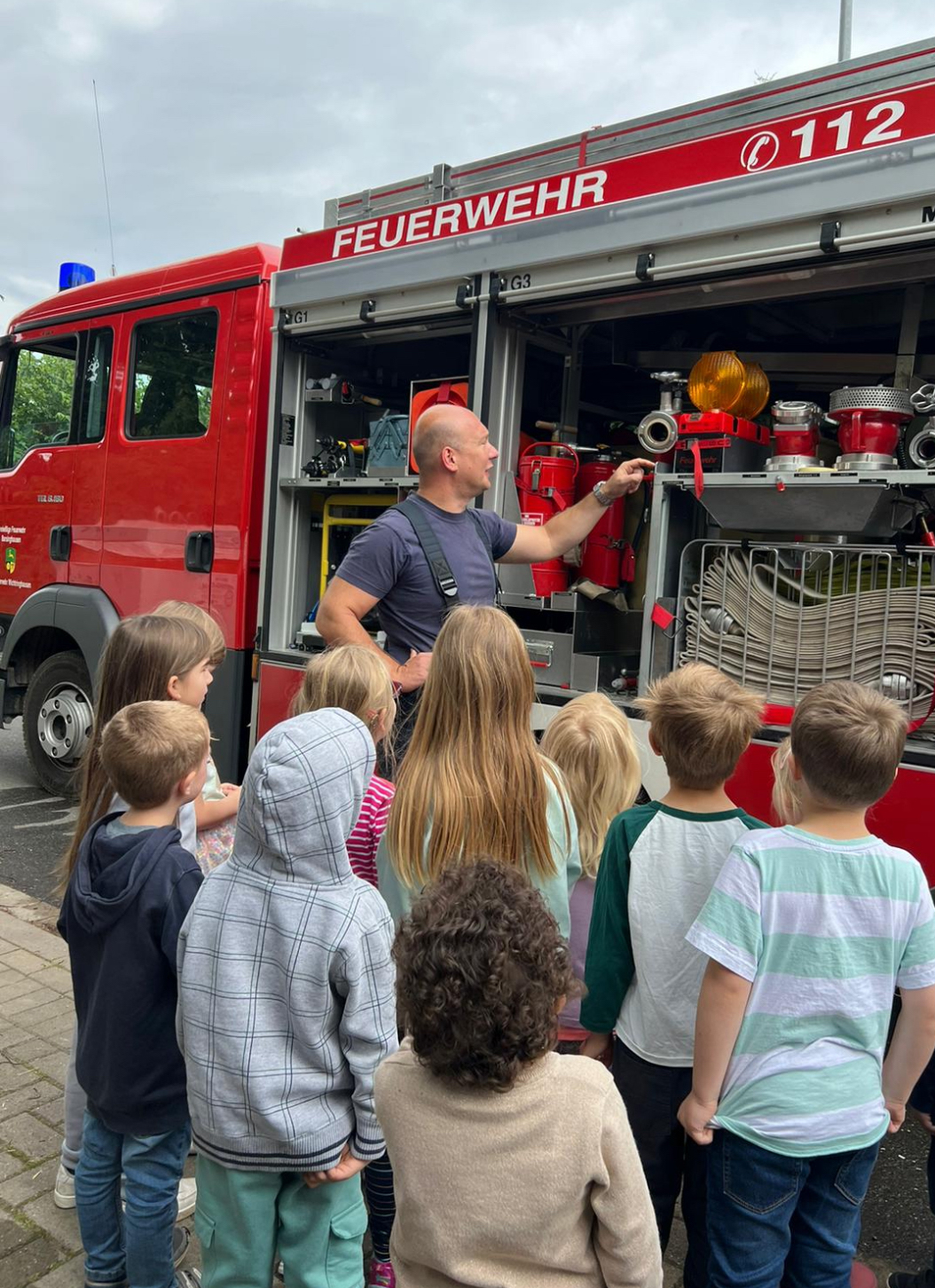 Parallel wurde mit der Brandbekämpfung begonnen. Zum Abschluss der Übung wurde das Gebäude mit einem Druckbelüfter entraucht, ein Einblick von einem Feuerwehrfahrzeug war ein spannender Abschluss für alle Beteiligten.