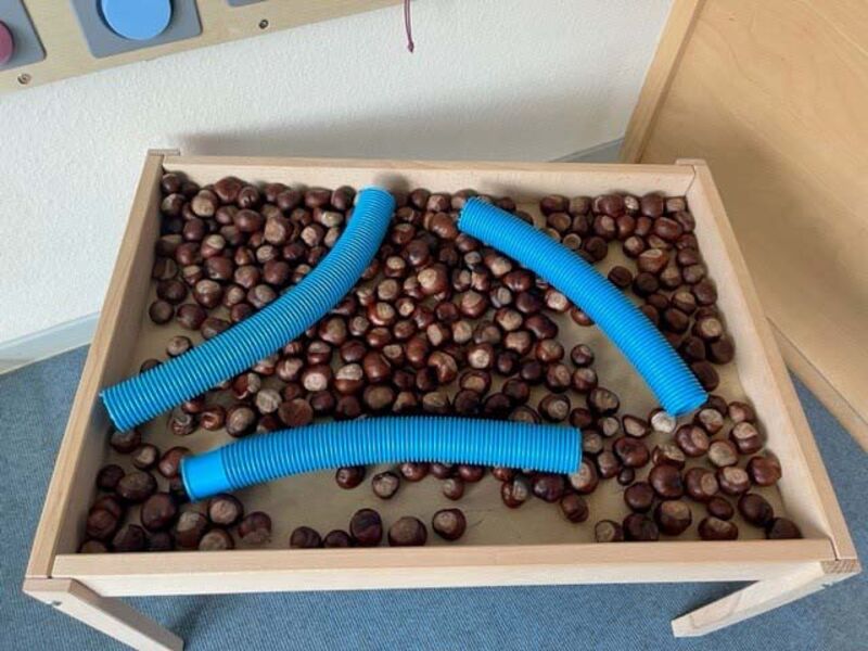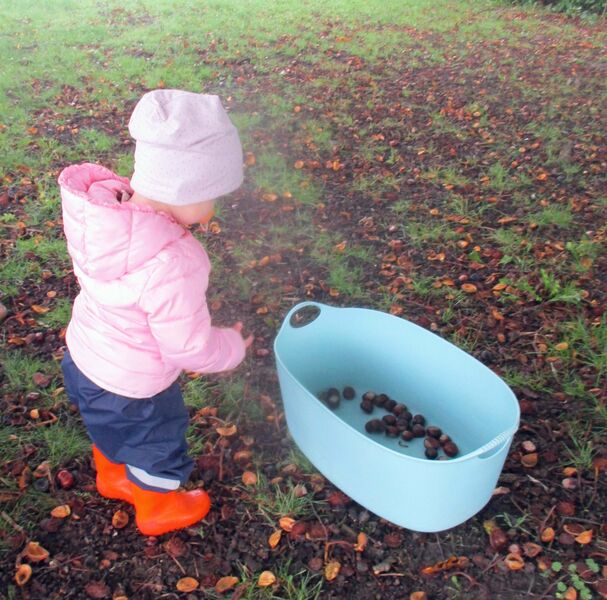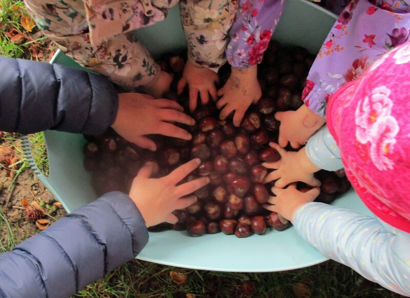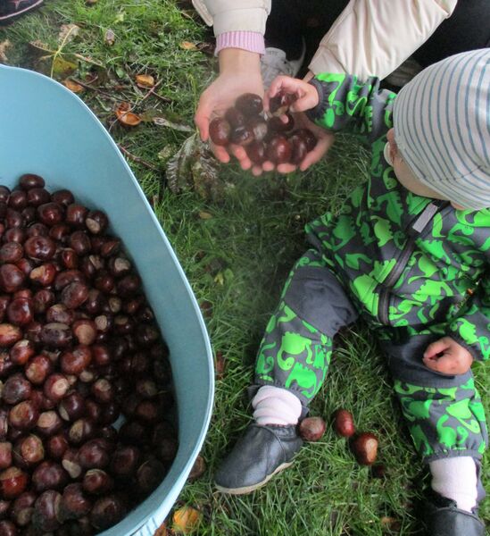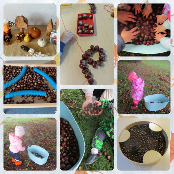Auch bei uns im Margarethenkindergarten ist der Herbst eingezogen. Der Windfang wurde herbstlich dekoriert. In den letzten Tagen drehte sich alles um die Kastanien. Die Kleinsten bei uns im Haus, haben auf dem Gelände vom Delphi-Bad ganz viele Kastanien sammeln können. Damit haben wir ein Kastanienbad eingerichtet.