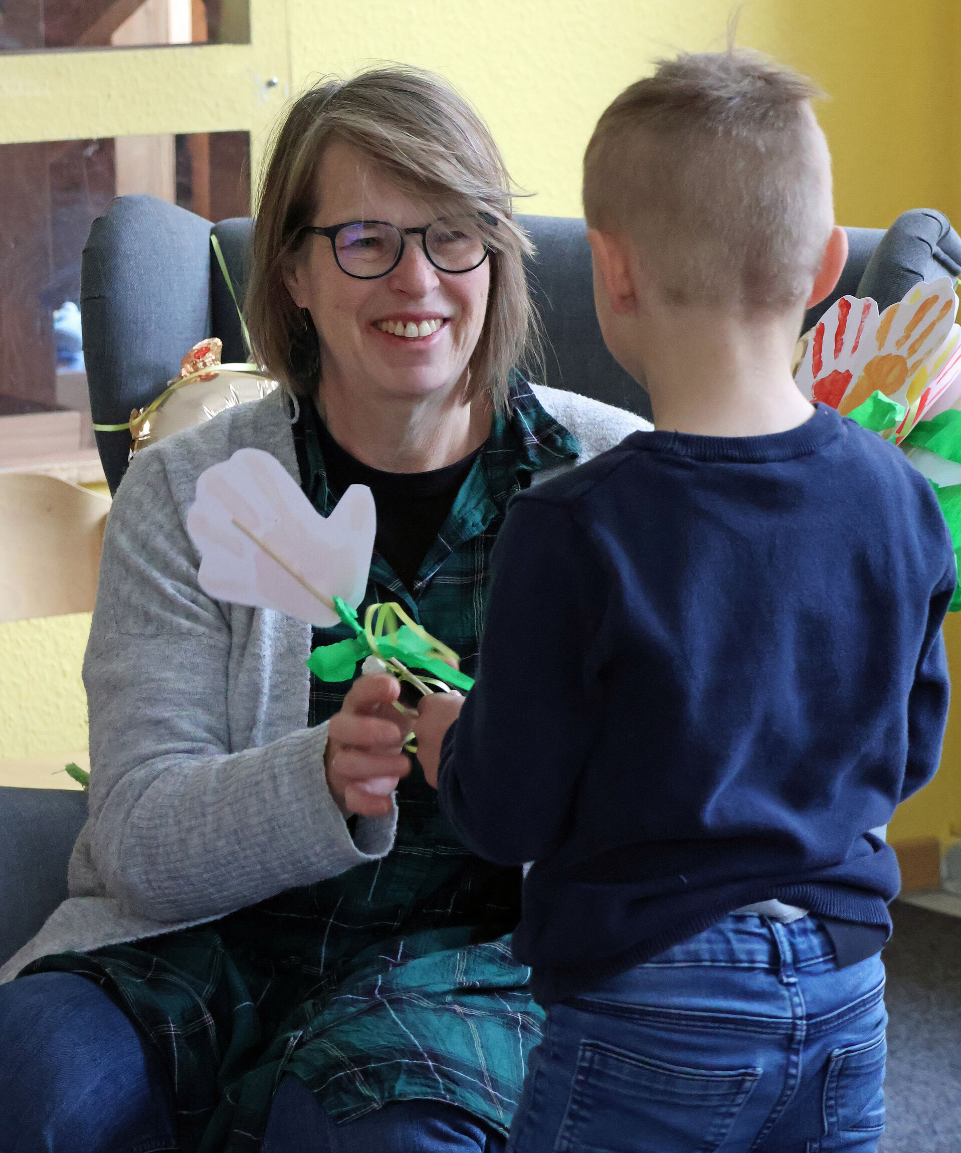 Anke Verwold freute sich am Freitag über die Überraschungen der Kolleginnen und der Kinder, die kleine Grüße überreichten. Und auch die Kinder nahmen etwas mit nach Hause - aus einem großen Stoffbeutel konnten sie sich Seifenblasenfläschchen auswählen.