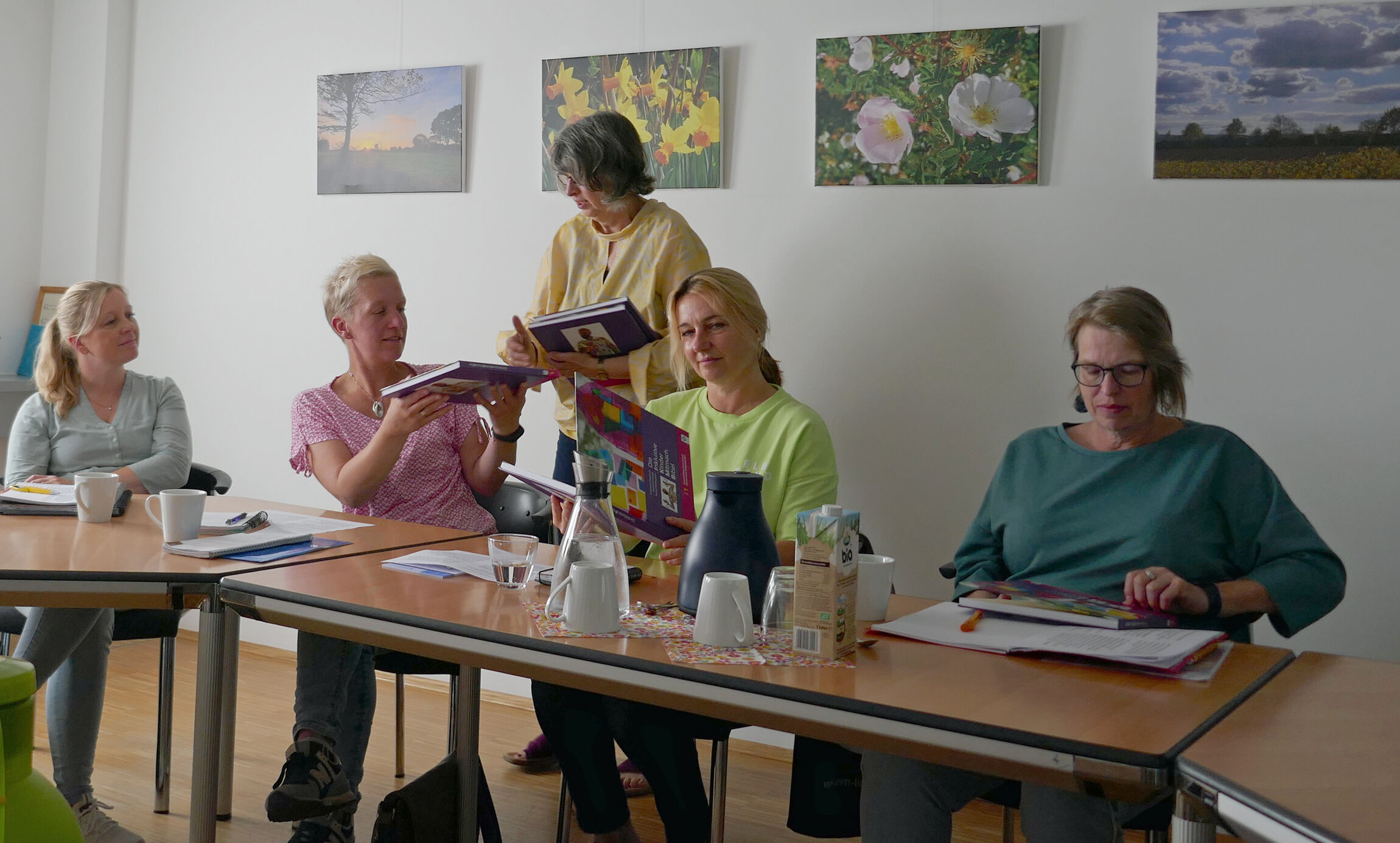 Die pädagogische Leiterin des Verbandes, Silke Yavuz, dankte Steffen Marklein für die Einblicke und Anregungen. "Der Kitaverband hat beschlossen, dass jede unserer 18 Kitas die beiden Bände der IKMB und die Alle Kinder Bibel für die religionspädagogische Arbeit geschenkt bekommt", sagte sie und verteilte an die anwesenden Leitungen die Bibeln.