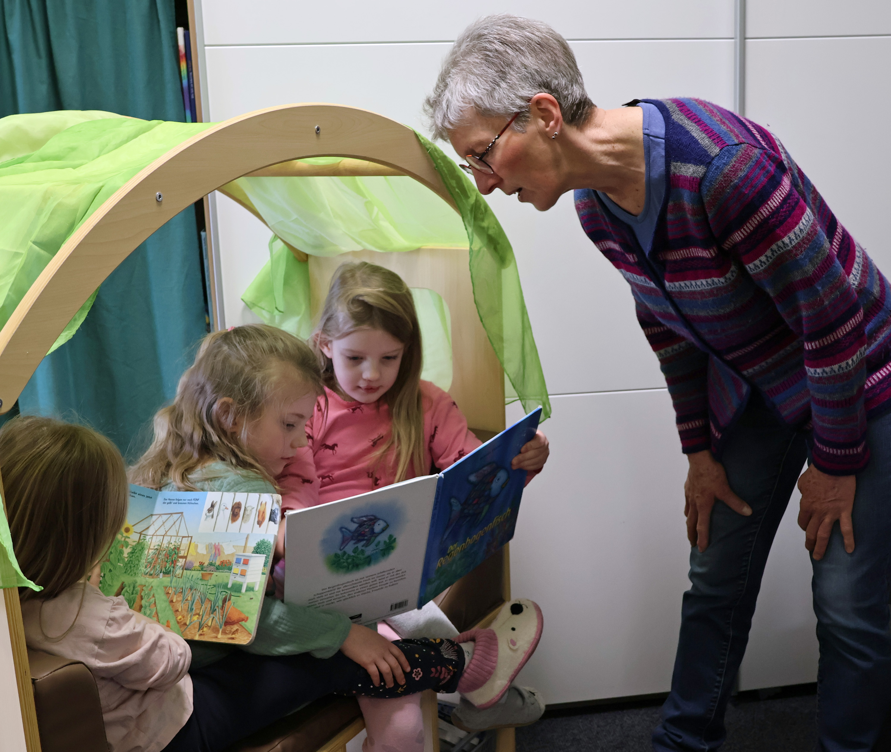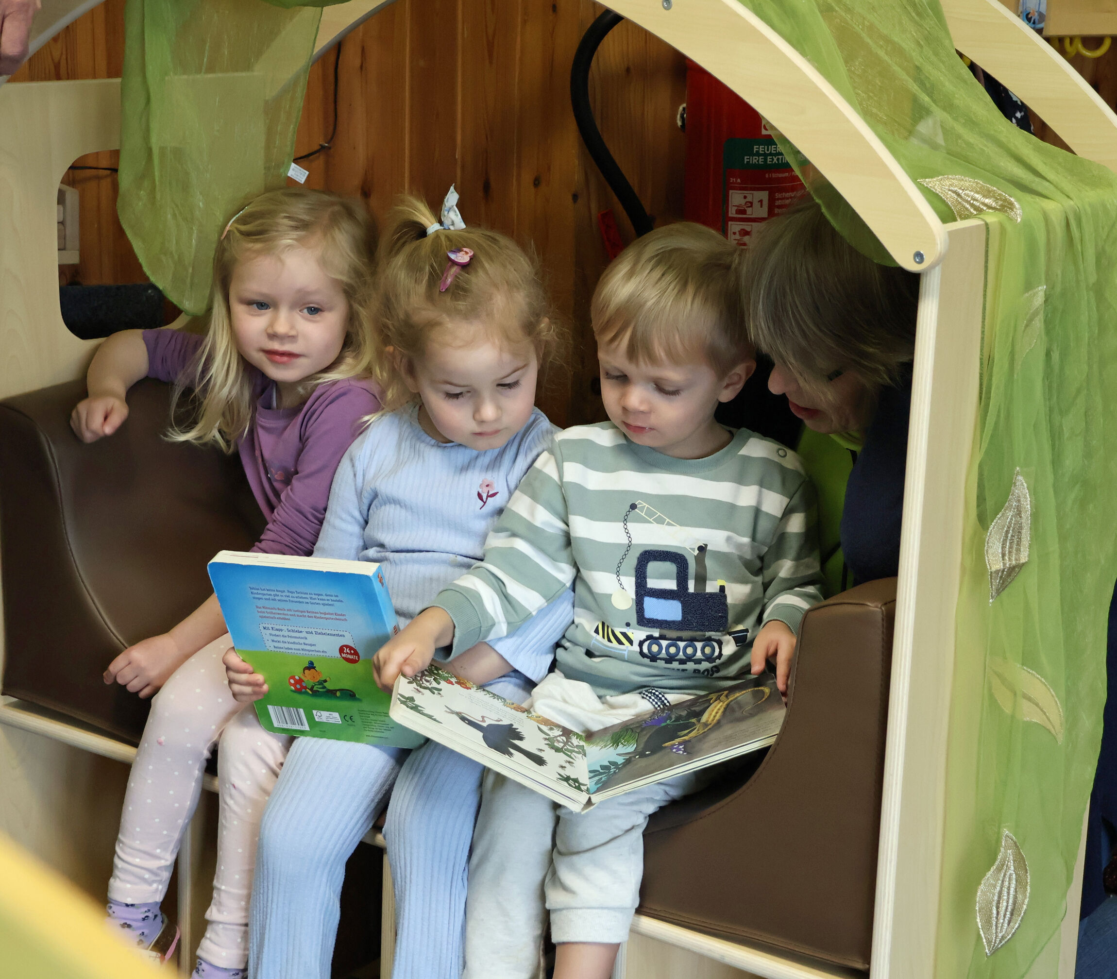 Die Lesebänke waren ein Wunsch des Kitateams und so war die Freude groß über die Zusage der Stiftung für die Anschaffung in Höhe von rund 1600 Euro. "Die Bänke werden von den Kindern gern genutzt, auch um sich mal zurückzuziehen. Die Tücher schirmen den Bereich etwas ab und es lassen sich auch mit Decken wunderbare Höhlen bauen", erklärte Anke Verwold, die Leiterin der Rasselbande. Unter den Sitzflächen, die auch zum Liegen einladen, stehen in kleinen Fächern immer Bücher bereit. Je nach Jahreszeit oder Themen im Kitaalltag wird das Angebot variiert.