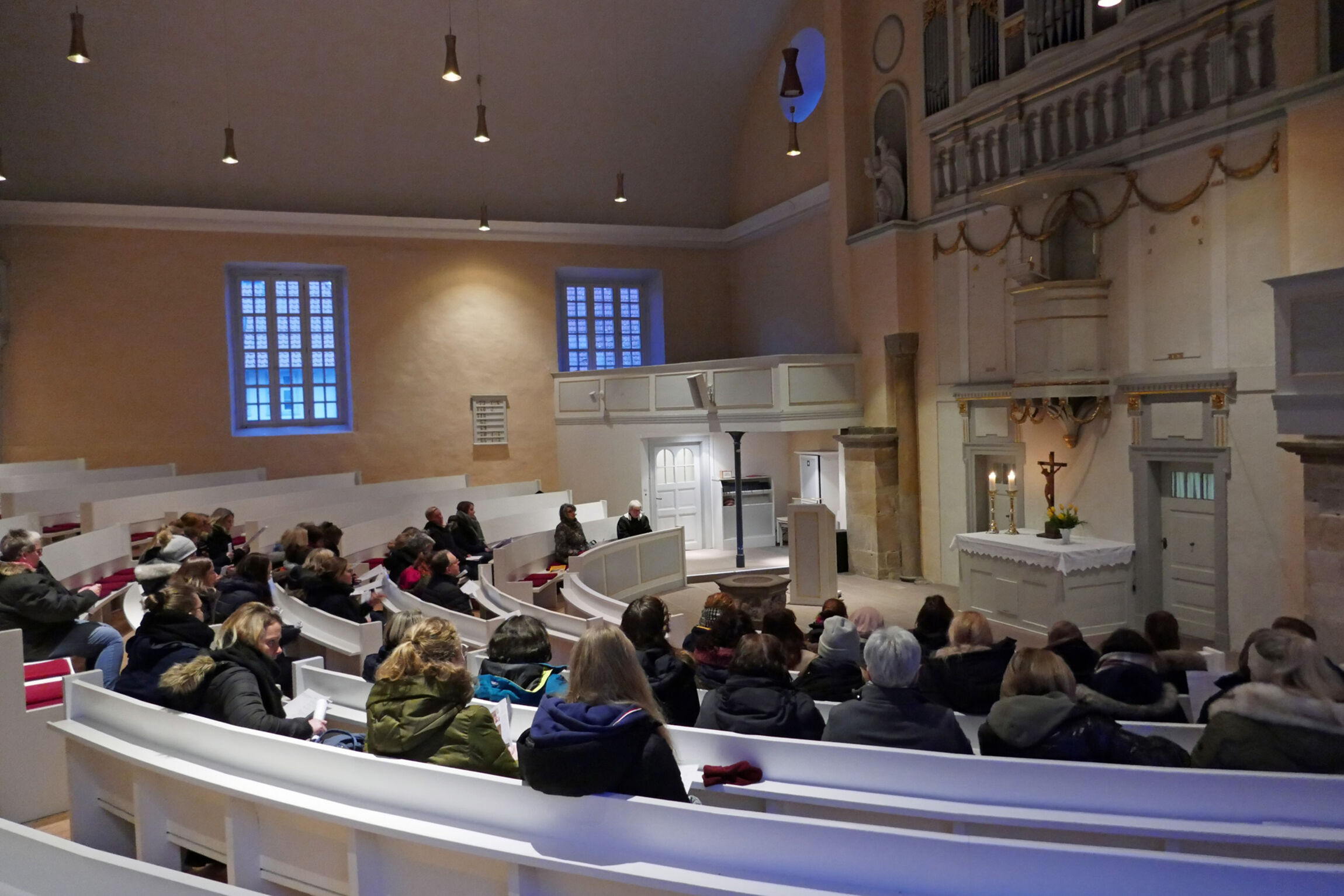 Einen gemeinsamen Start des Kita-Verbandes in das neue Jahr erlebten am Dienstag, 24. Januar, gut 50 Mitarbeiterinnen und Mitarbeiter beim Gottesdienst und dem anschließenden gemütlichen Beisammensein in Pattensen. Pastorin Carola Timpe und die pädagogische Leitung Silke Yavuz stellten im Gottesdienst in der St. Lucas-Kirche die Jahreslosung "Du bist ein Gott, der mich sieht" in den Mittelpunkt. "Diese Jahreslosung passt sehr gut auch in den Kindergartenalltag. Wir haben den Auftrag, hinzuschauen und die Kinder zu fördern. Und gleichzeitig wollen aber auch sie als Mitarbeitende gesehen werden vom Arbeitgeber, im Kollegium oder von den Eltern", machte die Pastorin deutlich. Gottes Sehen sei bejahend für jeden Menschen. Er gibt Ansehen und Würde. Silke Yavuz lud dazu ein, sich auch im Alltag Zeit zu nehmen, dem Gegenüber in die Augen zu schauen und wahrzunehmen. Zeit für persönliche Segnungen nahmen sich Superintendent Andreas Brummer und Carola Timpe - wer mochte, trat dazu in den Altarraum.