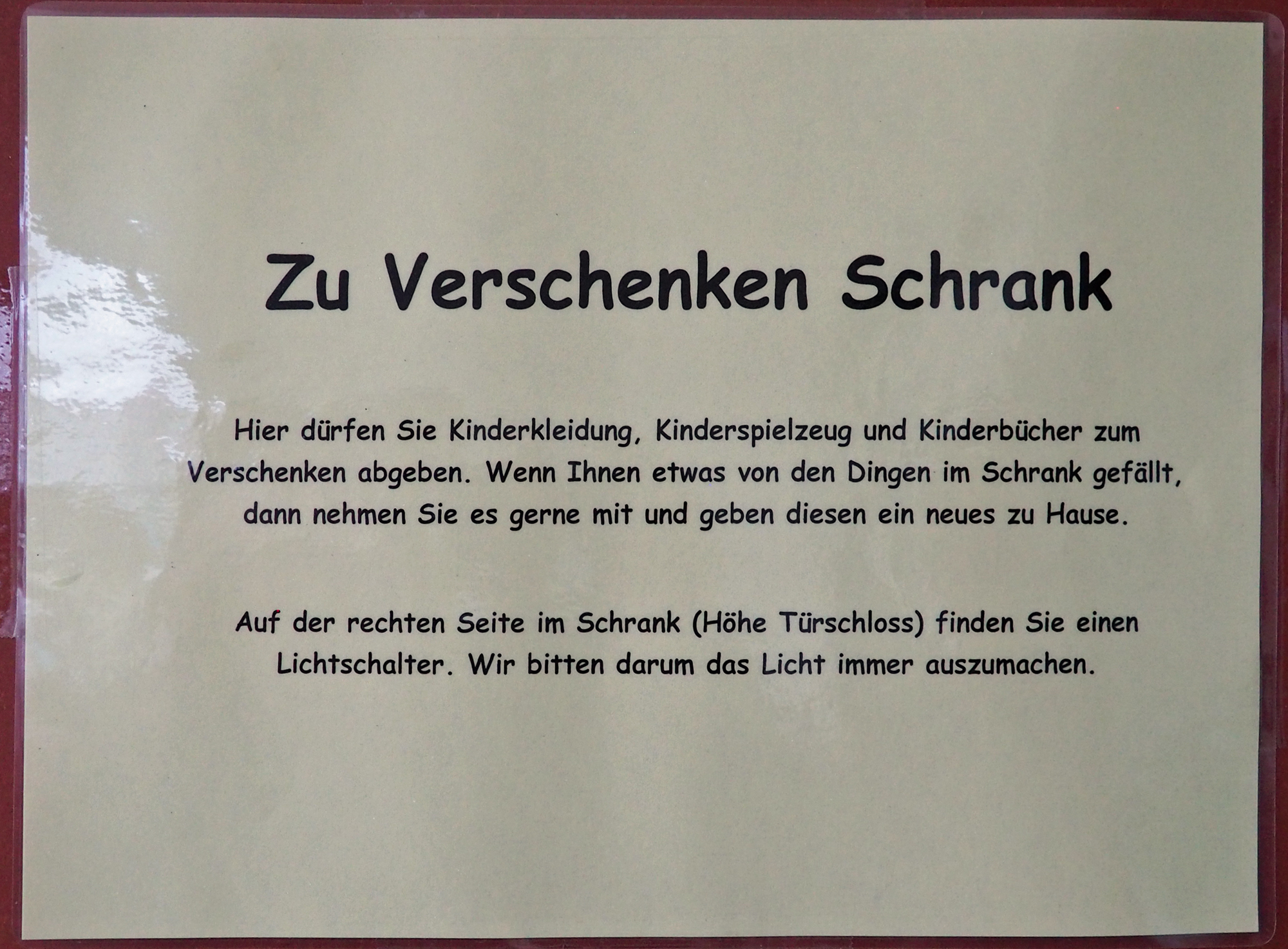 Eltern kennen das: die Gummistiefel wurden doch gerade erst gekauft - und nun passen sie nicht mehr. Das nächste Paar muss her. Das Bilderbuch oder Spielzeug wurde heiß geliebt - doch nun liegt es in der Ecke und wird nicht mehr beachtet. Die Liste ließe sich noch weiterführen. Und nun? Eine Antwort gibt der "Zu Verschenken Schrank" im Margarethen-Kindergarten in Gehrden. Hier stehen das nächste Paar Gummistiefel oder das nächste Buch parat.