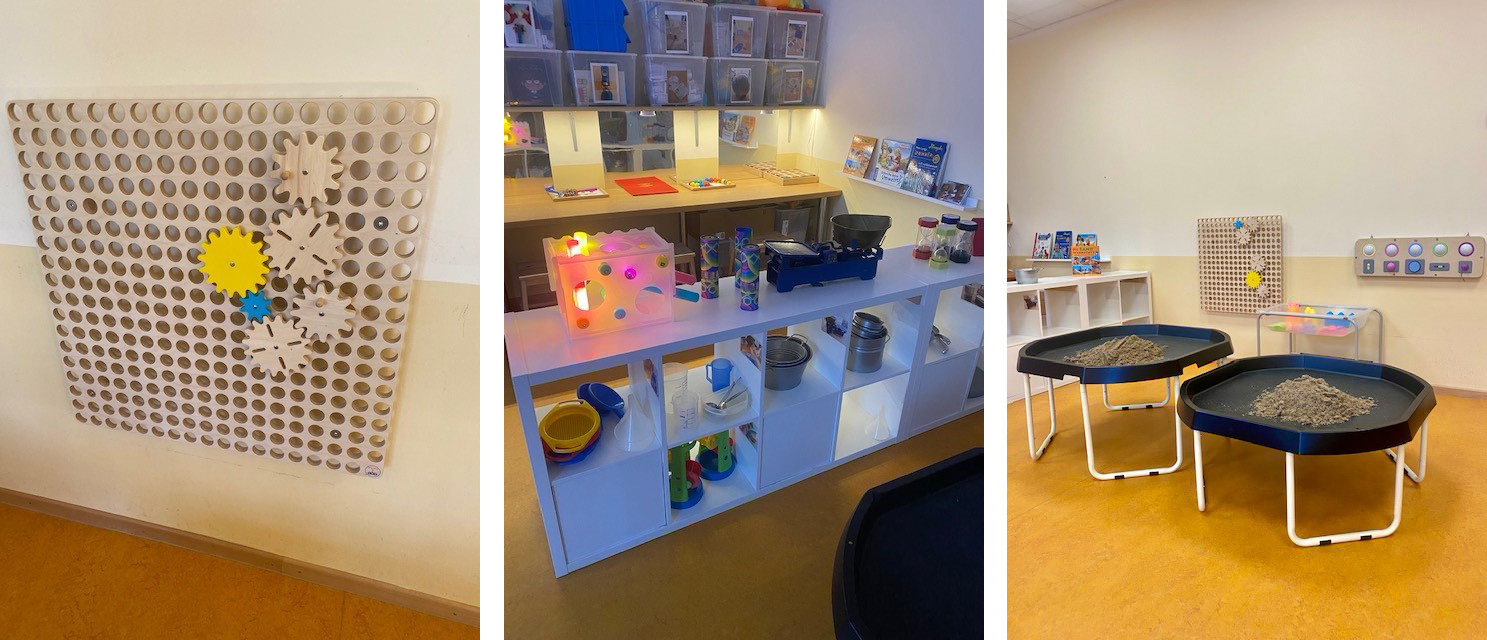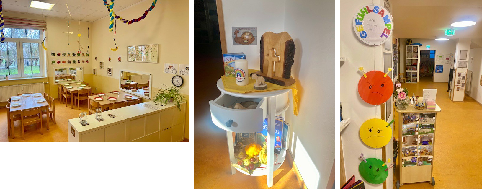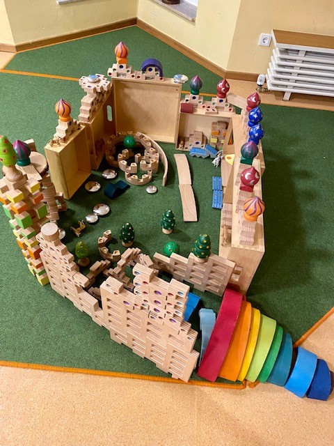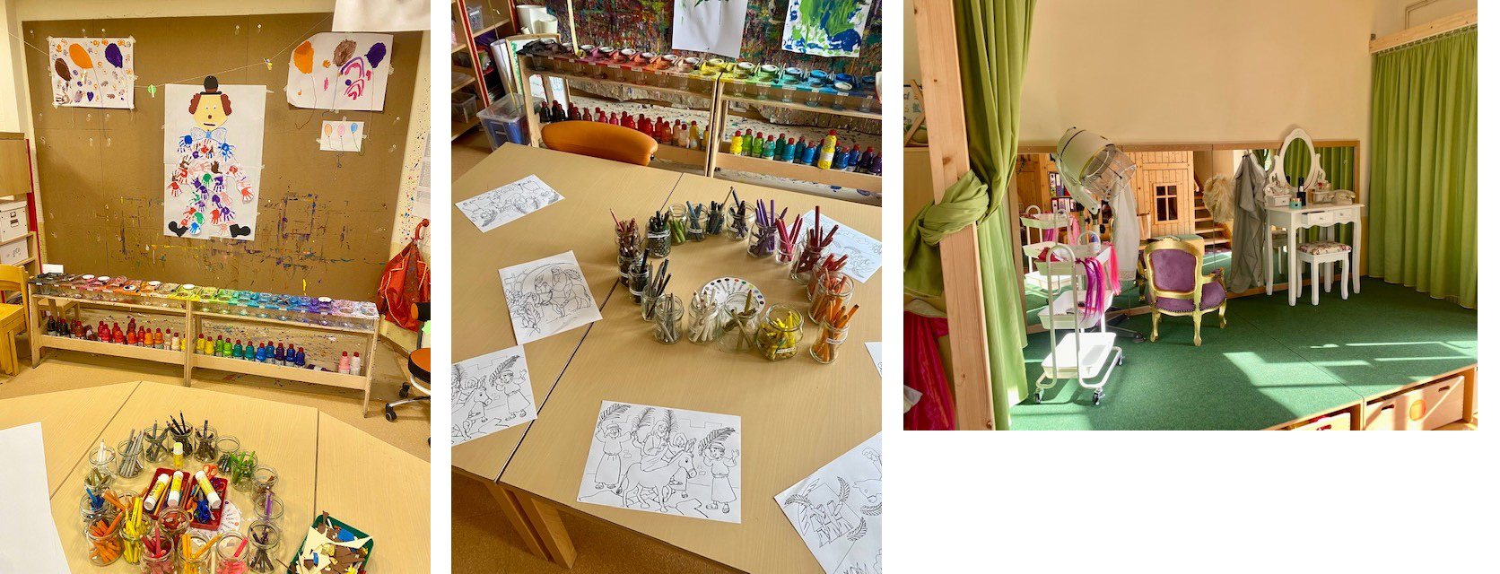 Das pädagogische Konzept der Einrichtung beruht auf dem Situationsansatz, welcher das Ziel verfolgt, die pädagogische Arbeit an den Bedürfnissen und Interessen des Kindes auszurichten und das Kind mit seinen Lebensthemen in den Mittelpunkt zu stellen. Der pädagogische Ansatz wird mit dem Handlungskonzept der offenen Kindergartenpädagogik umgesetzt. Hier leben wir das Bezugsgruppensystem, welches für jede pädagogische Fachkraft bedeutet, für ca. zehn Kinder eine engere Begleitung und Beobachtung des Kindes wahrzunehmen und für deren Dokumentation in Form der Portfolioarbeit, den Bildungs - und Lerngeschichten, den Sprachstands - und Entwicklungsgesprächen sowie für die Planung und Durchführung der Eingewöhnung, verbunden mit Elterngesprächen, verantwortlich zu sein. Die Räume für die Kinder sind als Lernwerkstattbereiche gestaltet, so dass die Kinder in der ganzen Einrichtung zum Ausprobieren und Entdecken eingeladen werden. Es gibt aktuell eine Forscher-, eine Künstler-, eine Bau-, eine Bewegungs - und eine Theaterwerkstatt. Die Mahlzeiten finden bedürfnisorientiert im Kinderbistro statt. Die Kinder dürfen ab 7.00 Uhr das Außengelände bis zum Tagesabschluss nutzen. Die pädagogischen Fachkräfte sind aktuell für sechs Monate für einen Werkstattbereich zuständig und für die Kinder im jeweiligen Bezugsort auffindbar. Hier befindet sich auch das Portfolio, das Familienfotoalbum und das Schubfach des Kindes.