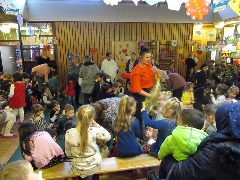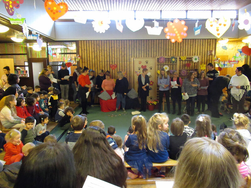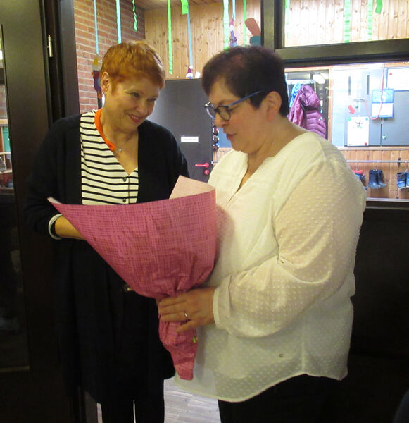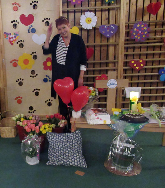 Die Mitarbeitenden im Thomaskindergarten haben ihrer Leiterin Sybille Jüppner am 31. Januar 2020 eine farbenfrohe Abschiedsfeier bereitet. Auf einer um die Mitte der kleinen Halle im Kindergarten gezogenen Girlande wechselten sich Blümchen, Herzchen und Schiffchen mit der Aufschrift „Viel Spaß“ ab und an der Sprossenwand prangten farbig bemalte Herzen und nett gestaltete Blüten. Diese hübsche Dekoration war von den Erzieherinnen und Erziehern in den einzelnen Gruppen - zusammen mit den Kindern - in den letzten Wochen für die heutige Abschiedsfeier gebastelt und bemalt worden.