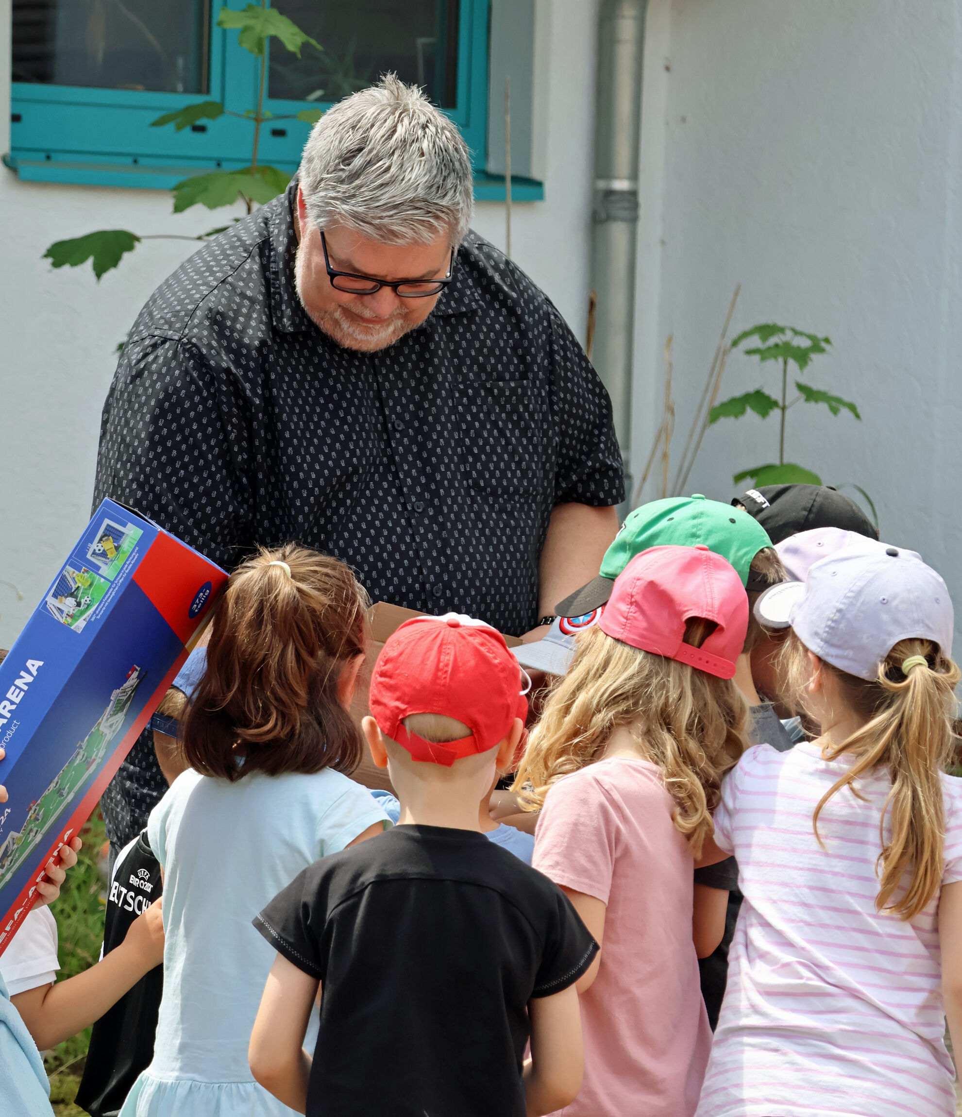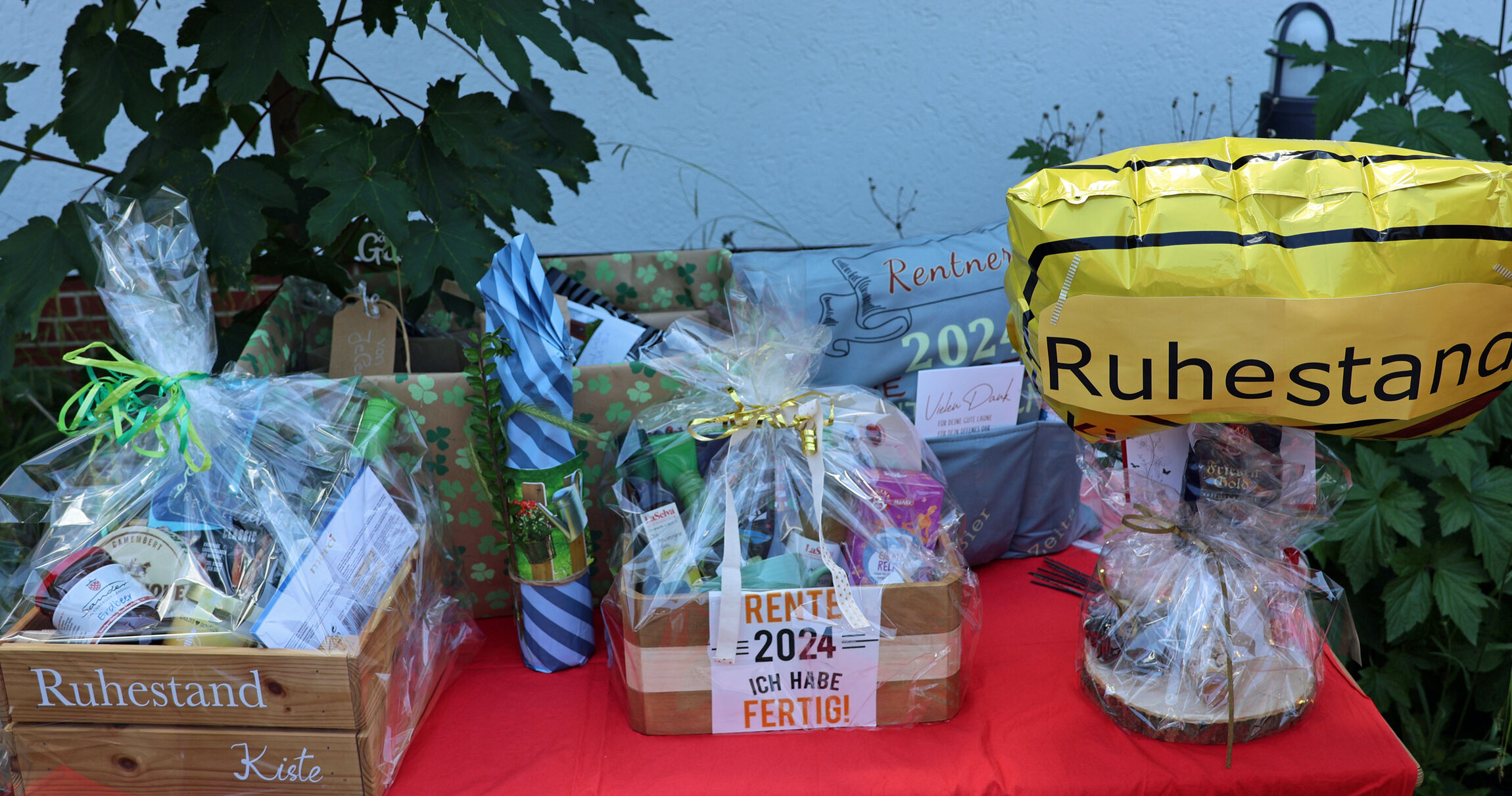 Zum Abschied gibt es Geschenke für die Kinder und den Ruheständler