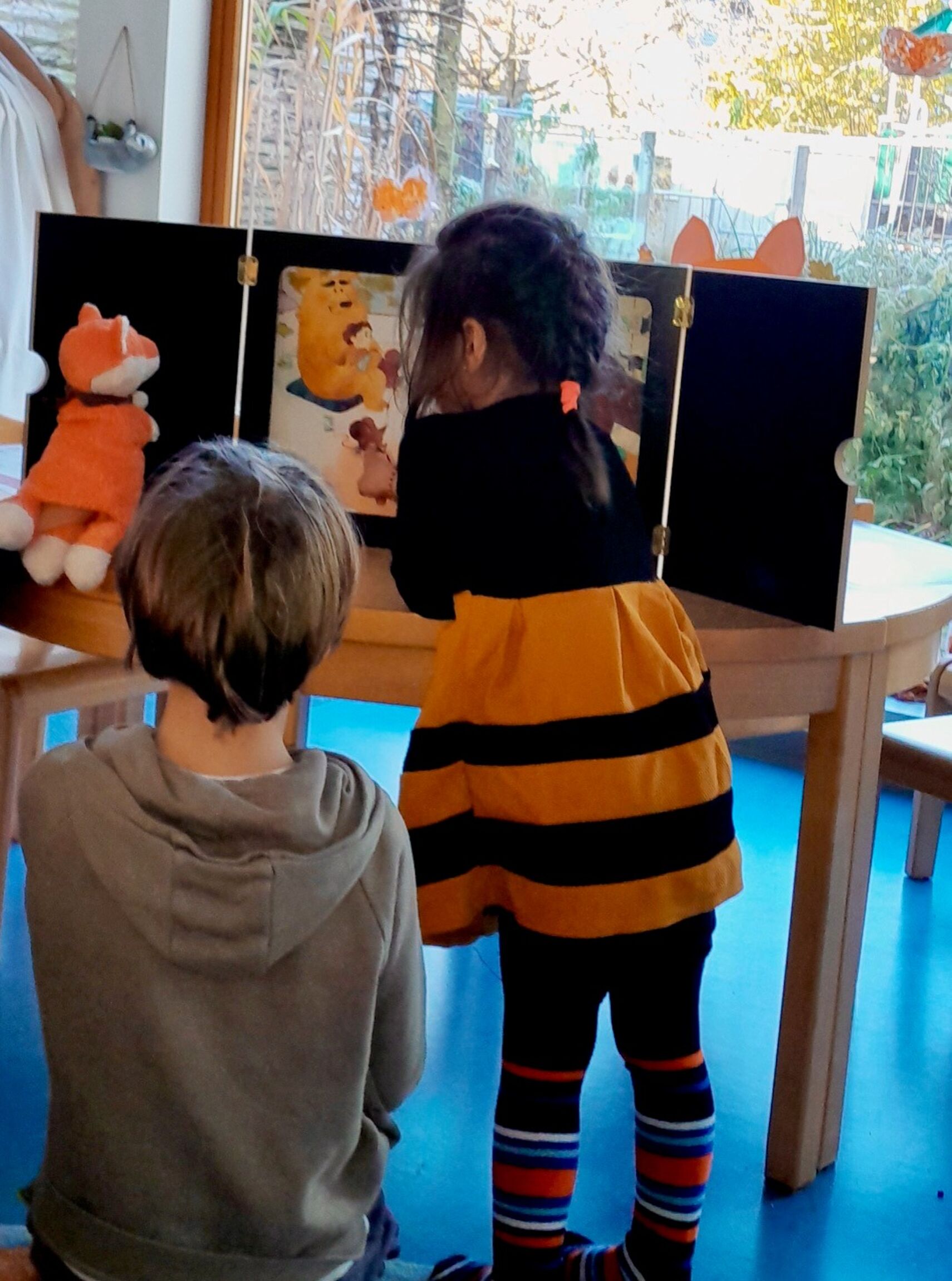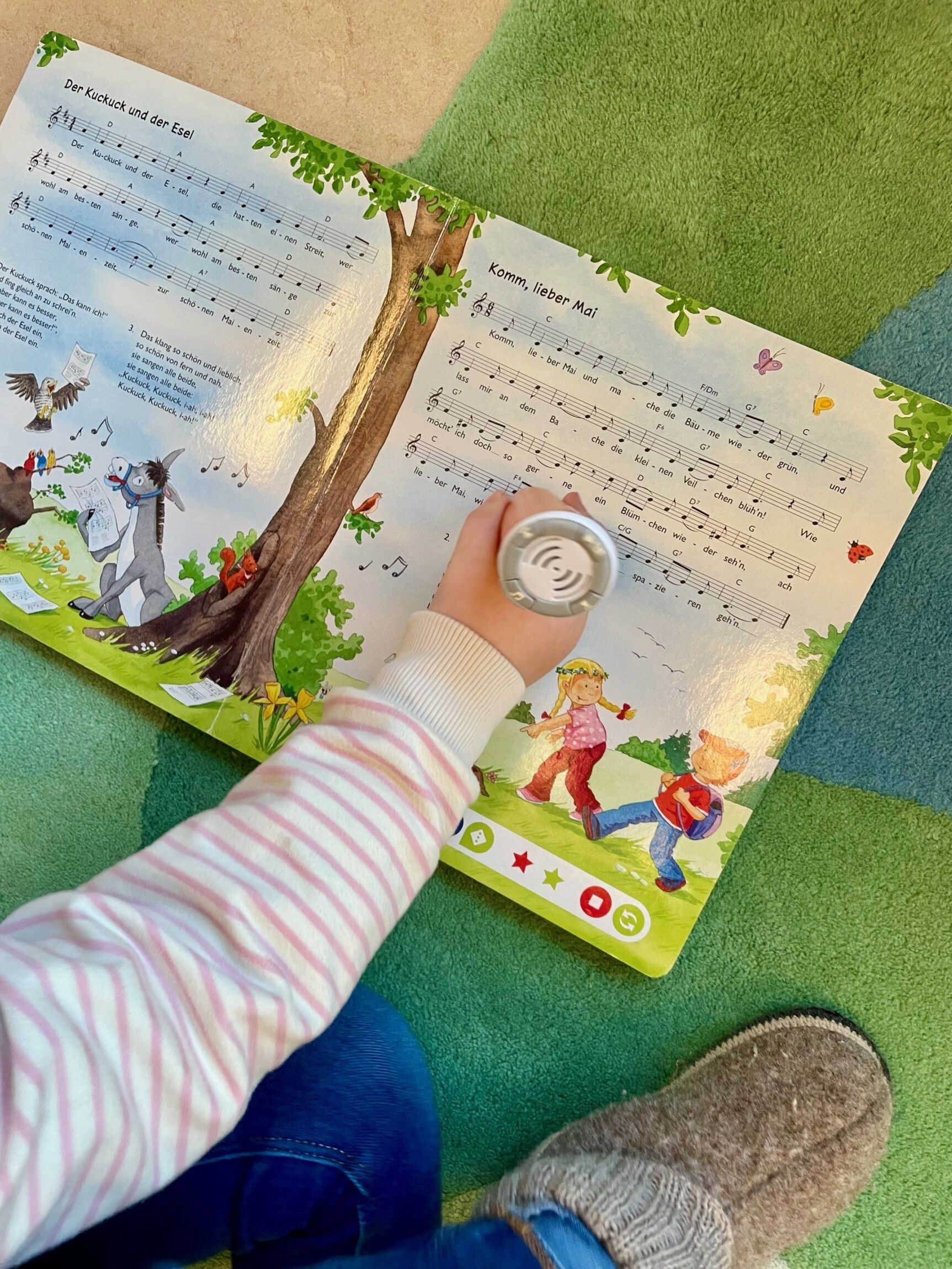 Vorlesen, Zuhören und Sprachen entdecken. In verschiedensten Konstellationen wurde täglich vorgelesen: mal gemütlich im Sitzkreis, mal im „Lesenest“, manchmal sogar im Bücherkino. Die Kinder hatten außerdem die Möglichkeit, Geschichten in verschiedenen Sprachen zu hören und so spielerisch sprachliche Vielfalt zu erleben. Wir haben uns Mit-Mach-Bücher angeschaut, in Wimmelbüchern neue Abenteuer entdeckt und in Lese-Lern-Büchern mitgelesen. Ein besonders schöner Moment war, dass die Kinder ihre eigenen Lieblingsgeschichten von zuhause mitgebracht haben. Stolz präsentierten sie ihre Bücher, erzählten, warum sie ihnen so wichtig sind, und lauschten aufmerksam, als diese Geschichten in der Gruppe vorgelesen wurden. So entstand ein bunter Mix aus vertrauten und neuen Erzählwelten.