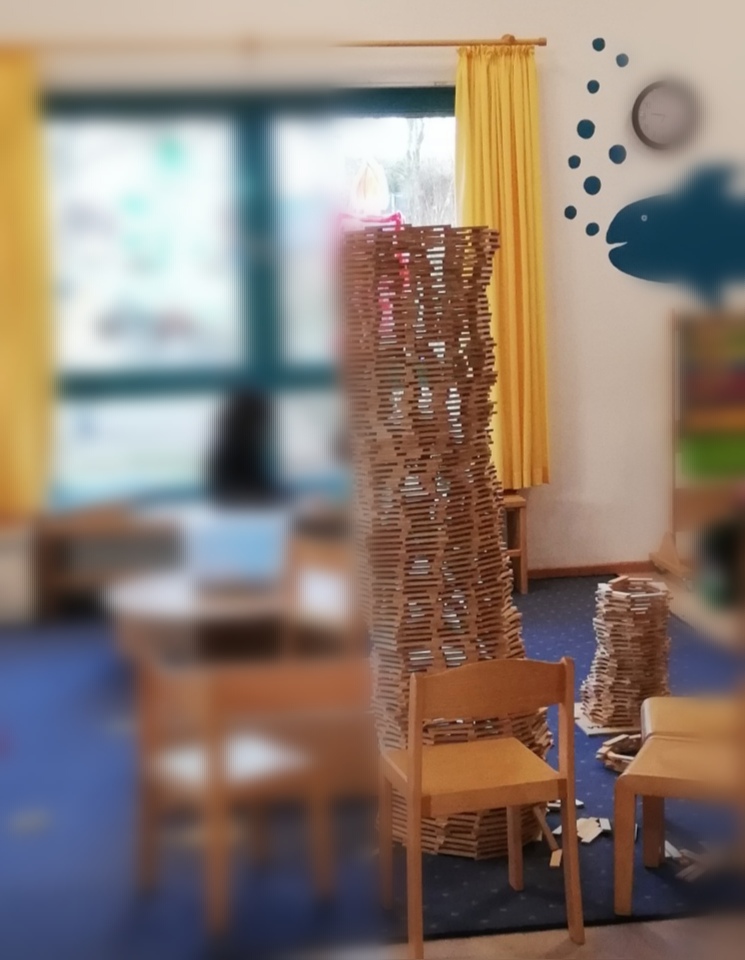 Auf den verschiedenen Bauplätzen stehen den Kindern des ganzen Hauses ganztägig vielfältige Bau - und Konstruktionsmaterialien zur Verfügung.