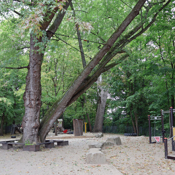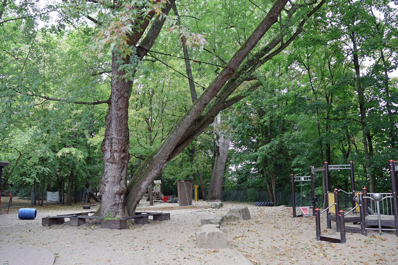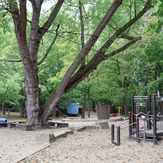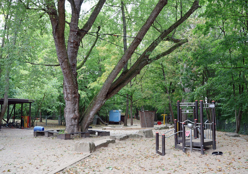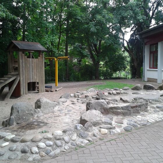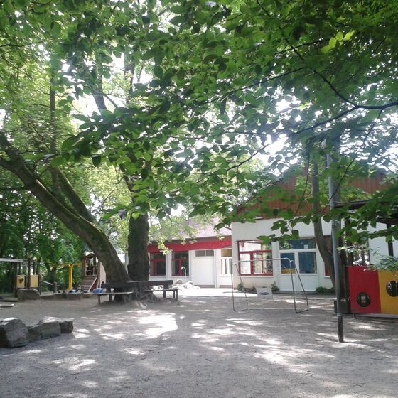 Unsere Kindertagesstätte verfügt über ein großes Außengelände mit parkähnlichem Charakter. Der alte Baumbestand spendet uns Schatten und bietet den Kindern die Möglichkeit, die Jahreszeiten hautnah mitzuerleben und vielfältige Naturerfahrungen zu sammeln. Den Kindern stehen unter anderem vielfältige Klettermöglichkeiten, ein Sandkasten, eine Rutsche zur Verfügung. Schauen Sie sich einfach die Fotos auf der Homepage unten an, um sich einen genauen Eindruck zu verschaffen.