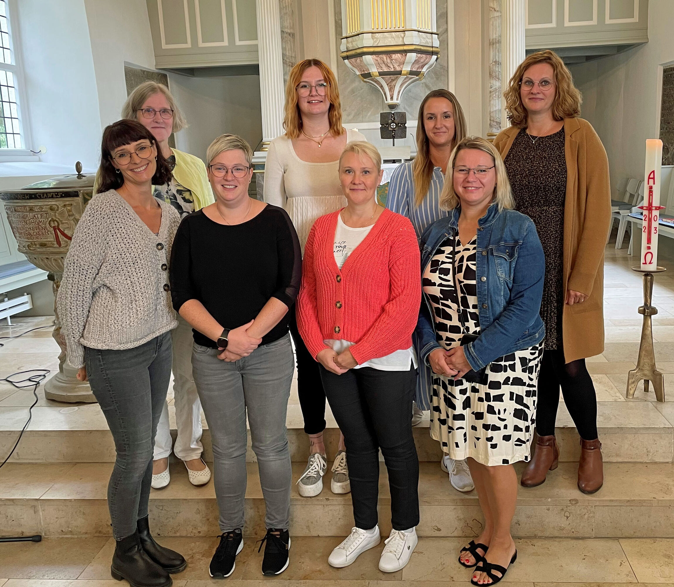 Glück- und Segenswünsche überbrachten auch Superintendentin Antje Marklein in ihrer Funktion als stellvertretende Vorstandsvorsitzende im Kindertagesstättenverband und die pädagogische Leiterin Silke Yavuz. An das Team wurde ein ein Gutschein für einen gemeinsamen Besuch in der örtlichen Eisdiele überreicht. Im Anschluss an den Gottesdienst schloss sich ein Empfang im Gemeindehaus an.
