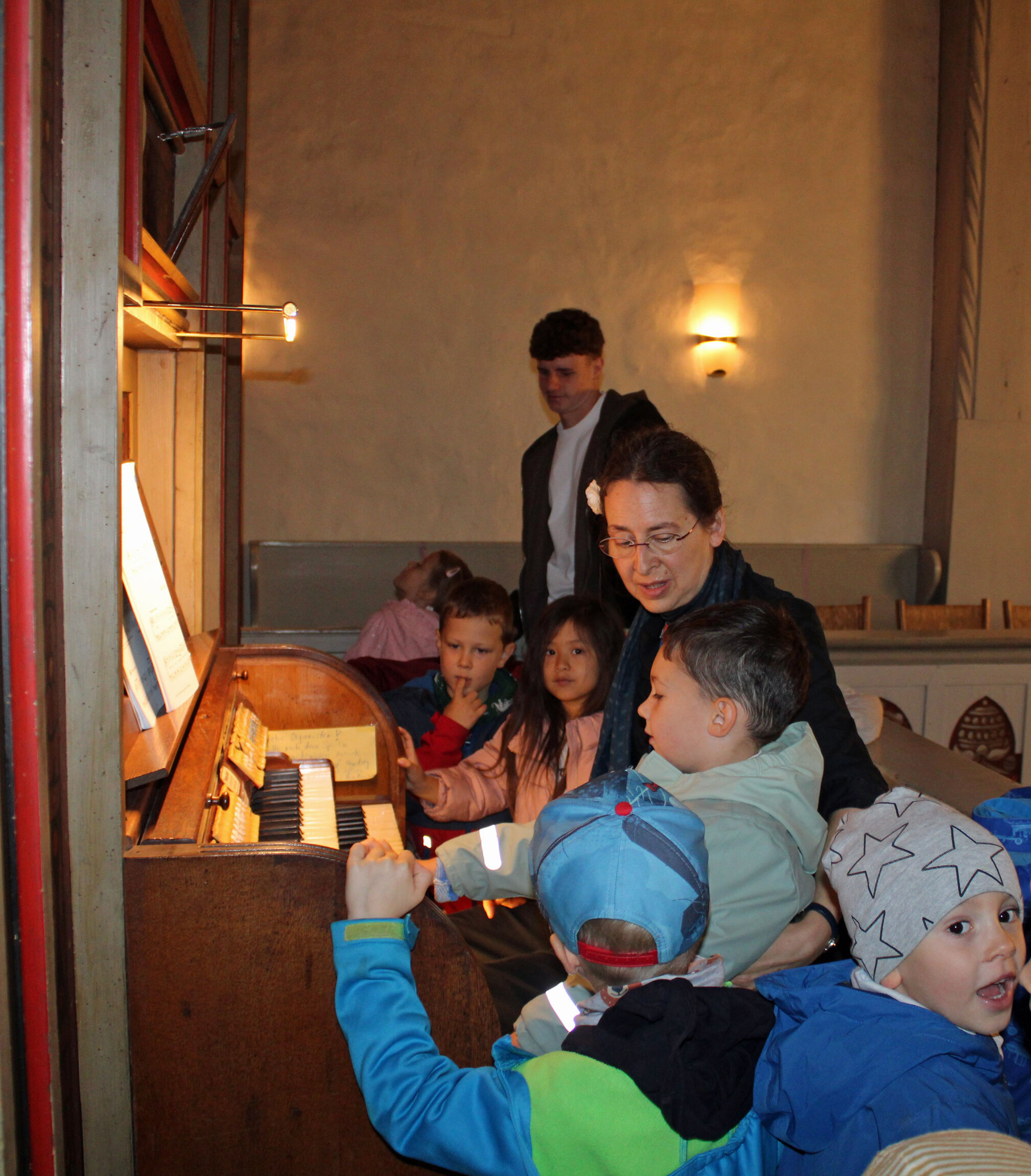 Nach einer guten Stunde verabschiedete Barbara von Witzleben die Kinder und gab ihnen noch Orgelbastelbögen für Zuhause mit. Das war ein spannender Vormittag für die Kinder. Viele erzählten begeistert ihren Eltern davon. Im November darf noch eine zweite Kindergruppe einen solchen Ausflug machen. Wie toll, dass wir so eine gute Zusammenarbeit mit der Kirchengemeinde vor Ort haben.