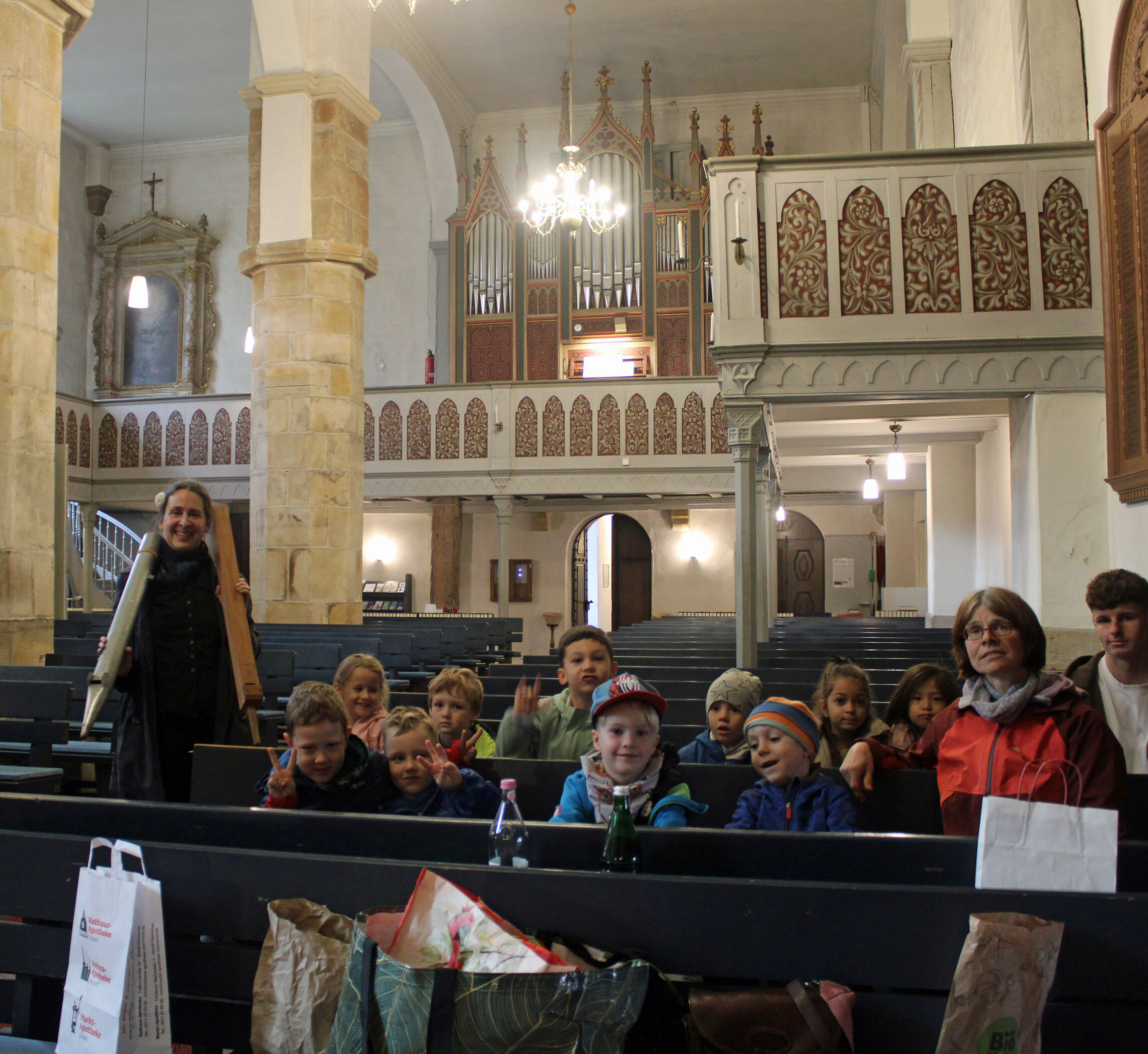 Dort entstanden viele spannende Gespräche. Anschließend erklärte die Kirchenmusikerin Barbara von Witzleben den Kindern mit viel Kreativität wie eine Orgelpfeife funktioniert und wusste zu berichten, dass in der Orgel der Klosterkirche über 1100 Pfeifen sind, die zum Klingen gebracht werden können.