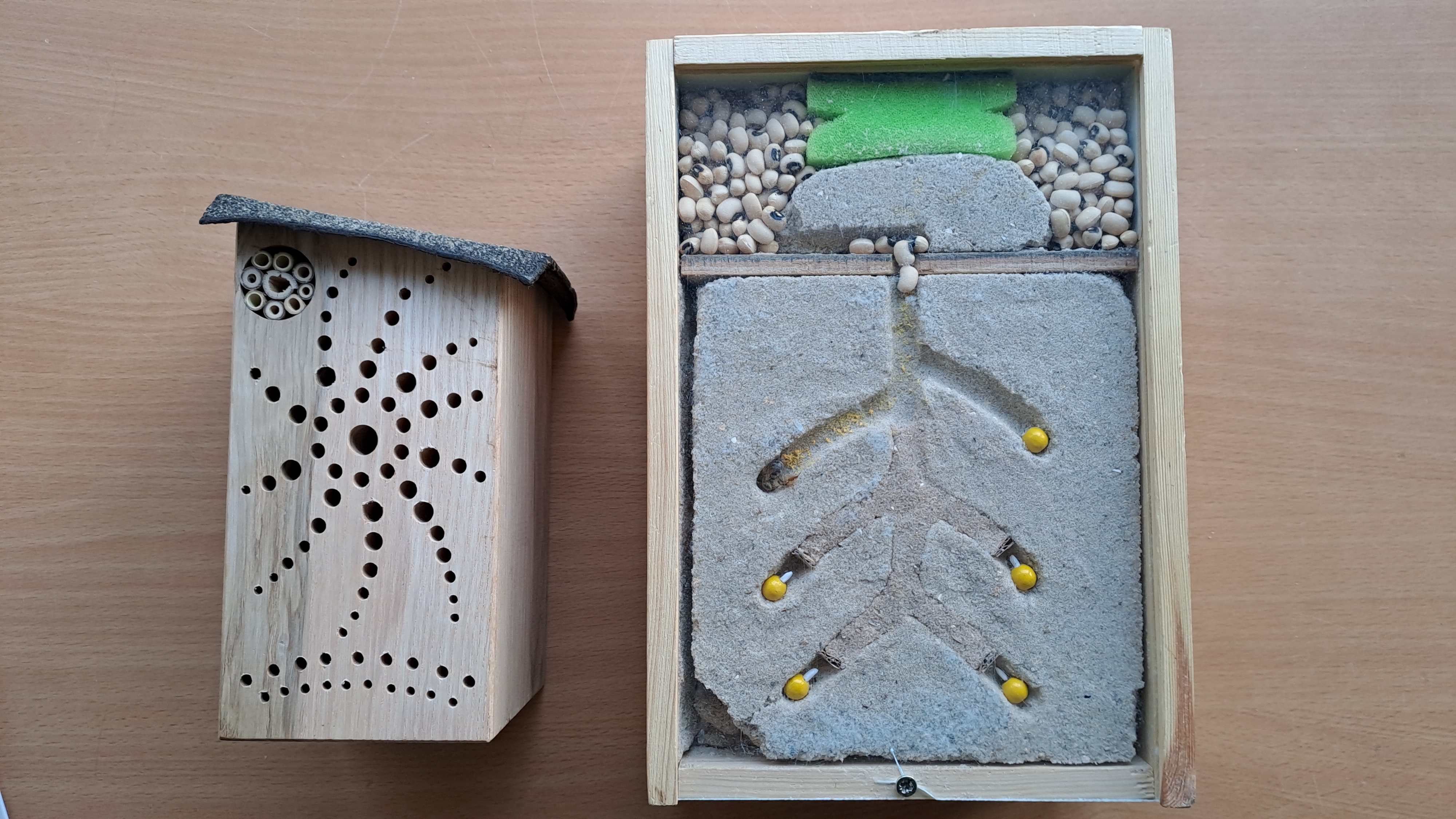 Ein weiterer Schwerpunkt ist der Abbau von Ängsten gegenüber den harmlosen Wildbienen. Wir wollen den Kindern spielerisch einen positiven Zugang zu der Wildbiene ermöglichen. Generell soll eine Sensibilität für Insekten geschaffen werden, sodass vor allem bei den Kindern ein Interesse geweckt wird, die Tiere wahrzunehmen, zu beobachten und wertzuschätzen.