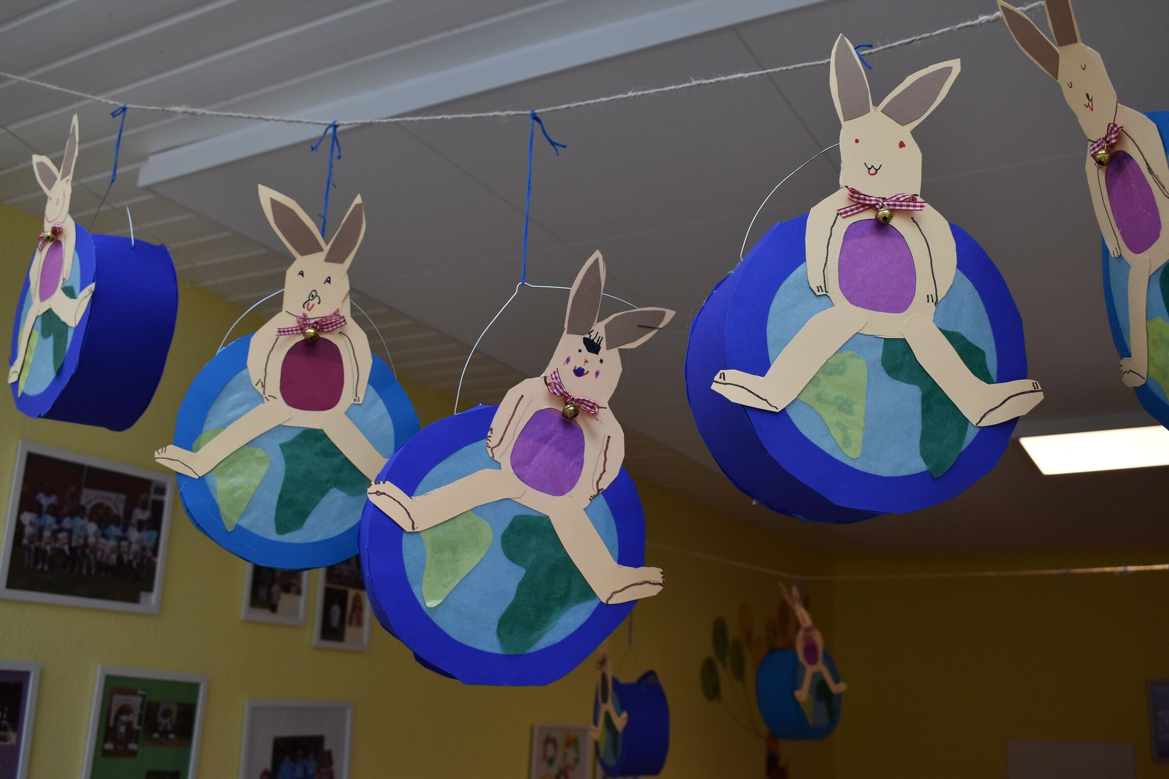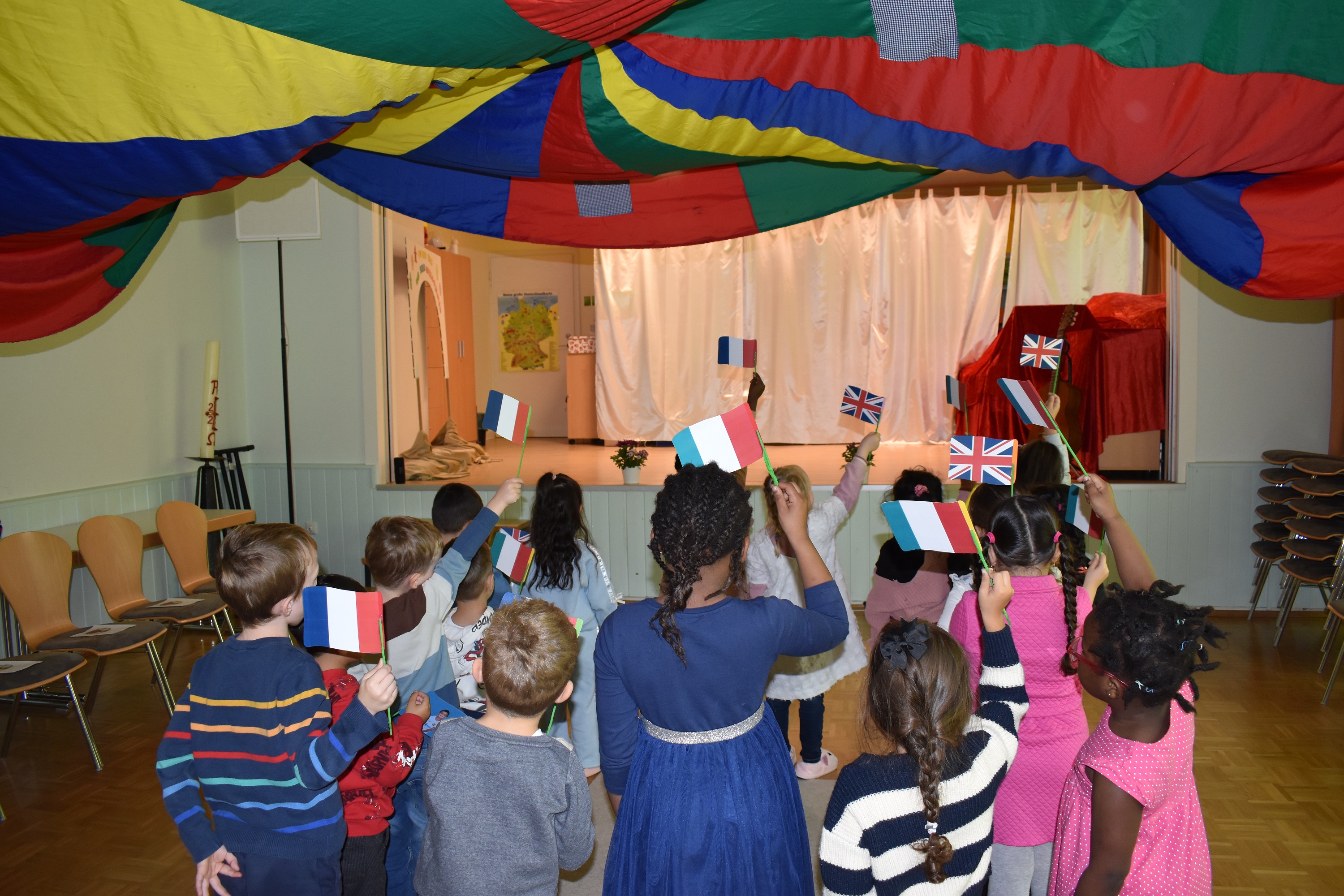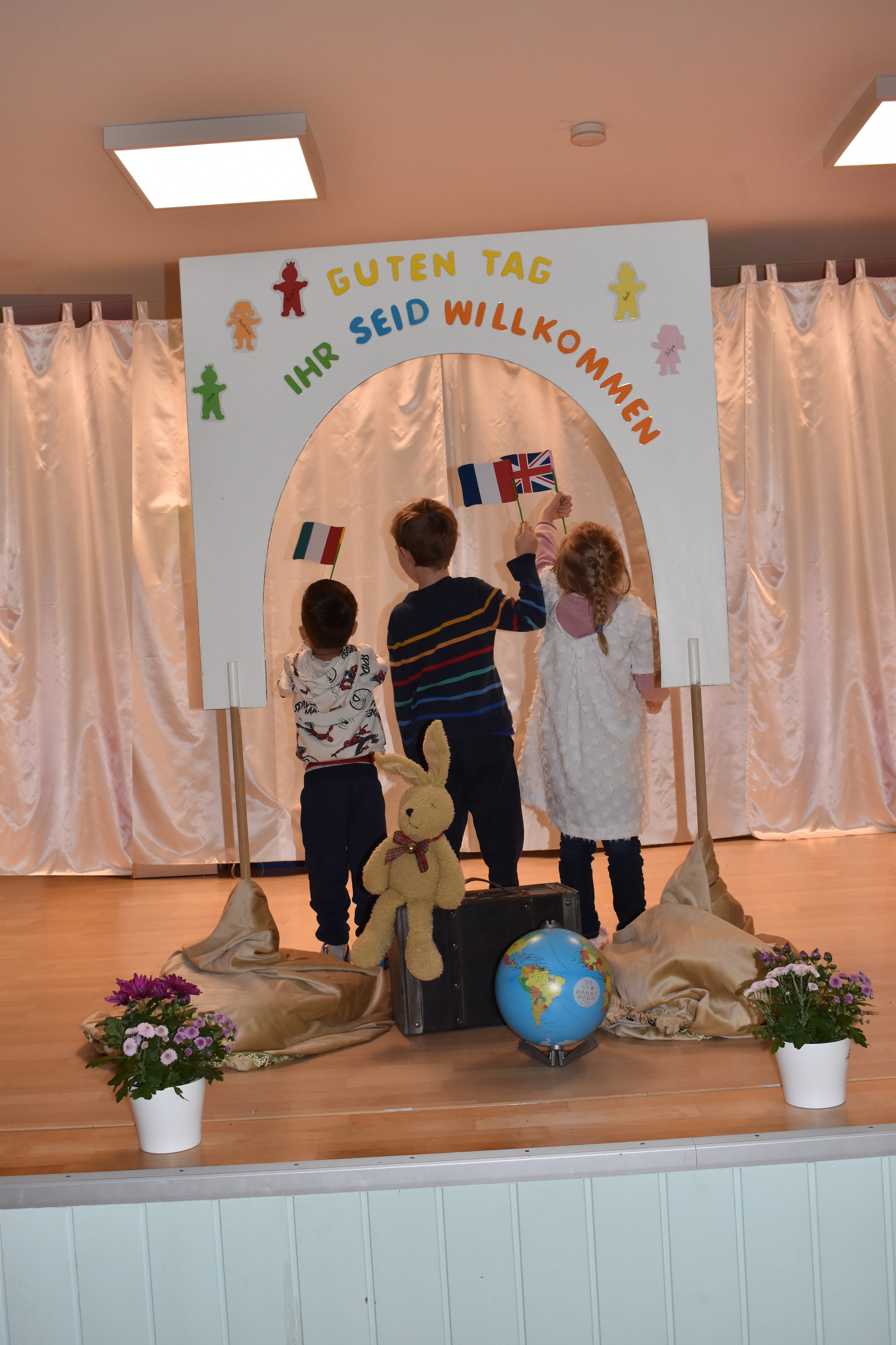 Auch bei unserem Begrüßungsgottesdienst war Felix mit dabei. Ein symbolisch aufgebauter großer Heißluftballon flog die neuen Kinder in die Kindergartenzeit. Mit selbstgebastelten Fähnchen aus bereisten Ländern und passender landestypischer Musik wurde es zu einem fröhlichen und besonderen Fest.