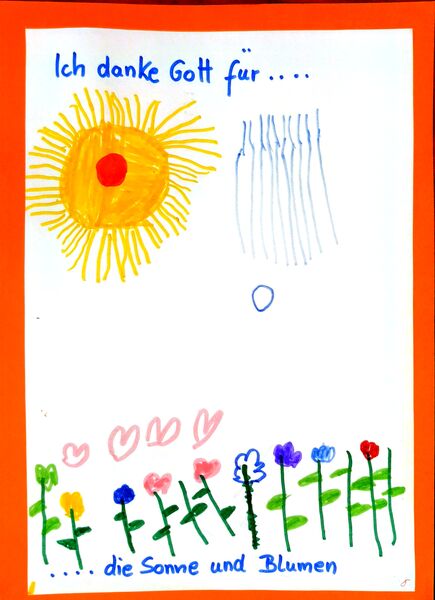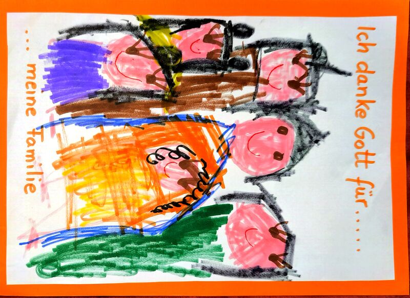 Gemeinsam mit den Kindern und Eltern feierten wir in der Taufkapelle einen fröhlichen Erntedankgottesdienst. Im Vorfeld malten die Kinder Bilder zum Thema“ Ich danke Gott für ……,“- für Familie, Geschwister, Geschenke, Autos und Liebe usw.