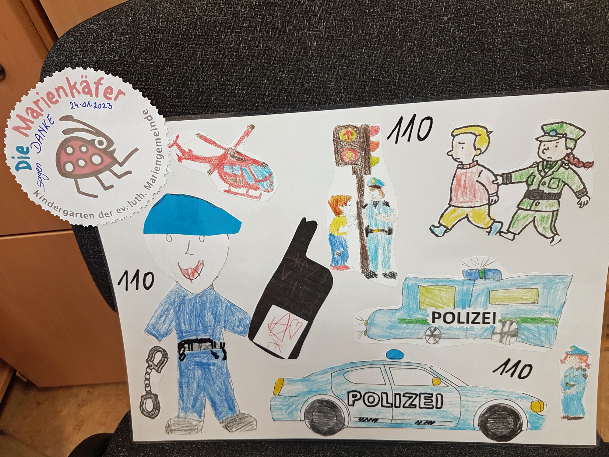 Ängste werden abgebaut und die Kinder bekommen Sicherheit und Selbstbewusstsein im Umgang mit diesen Themen. Die Kinder lernen Verantwortung für sich selbst und für andere zu übernehmen. Unser Kontaktbeamter, Herr Klaus vermittelte den Kindern die Aufgaben der Polizei, Sachwissen zum Thema und wie man sich in schwierigen Situationen verhalten muss.
