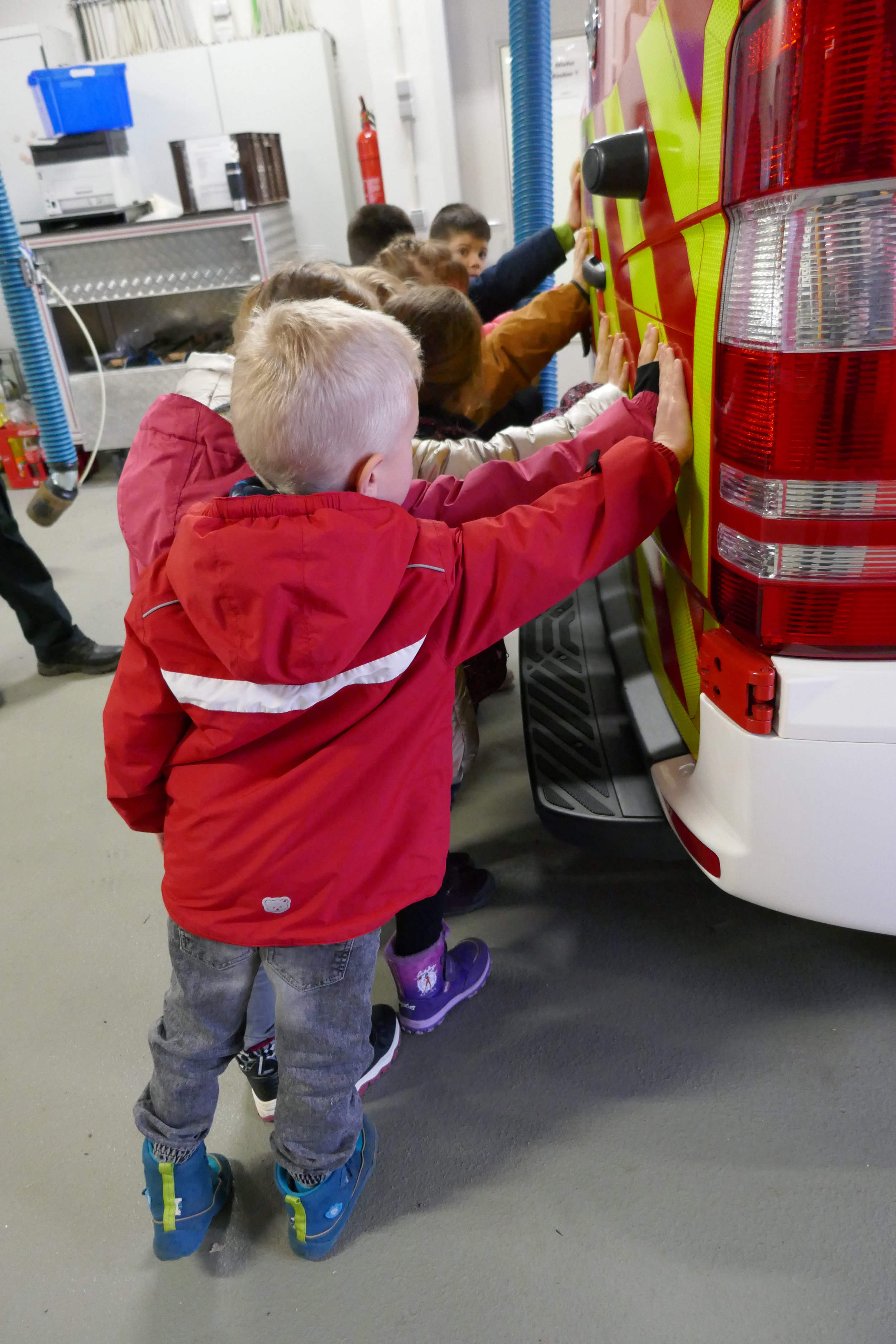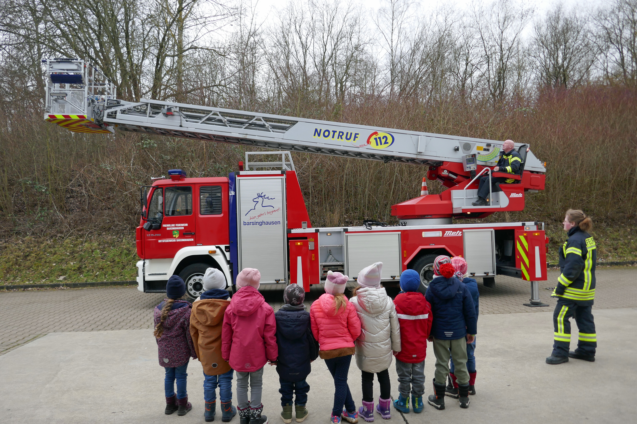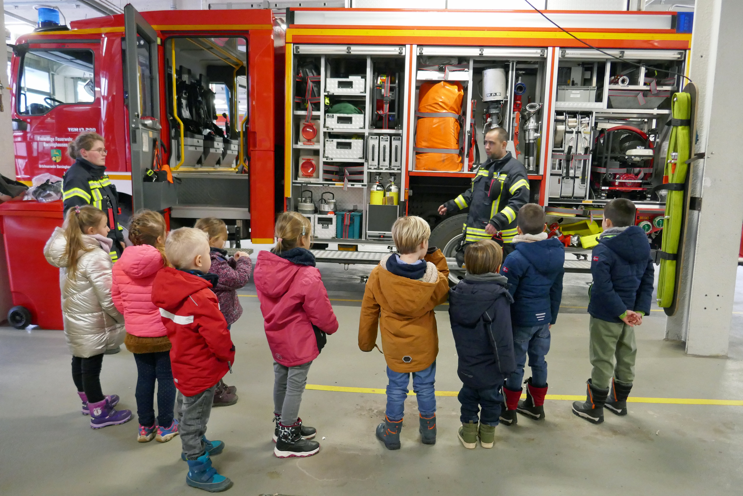Ein spannender Vormittag liegt hinter den "Wackelzähnen", den größeren Kindern im Marienkäfer-Kindergarten in Barsinghausen. Im Rahmen des Projektthemas "Helfer und Retter in der Not" besuchten neun Jungen und Mädchen die Feuerwache an der Egestorfer Straße. Sarah Heine, Patrick Heine und Frank Mues von der Freiwilligen Feuerwehr erklärten die Aufgaben im Fall eines Einsatzes - und nahmen vor allem Ängste. So zog Sarah Heine die Atemschutz-Bekleidung an, mit der sie zum Beispiel Personen aus einem brennenden Haus retten würde. "Ihr braucht vor den Geräuschen, die die Atemluft macht, keine Angst haben. Und auch die Kappe, die ihr dann aufsetzt bekommt, schützt euch vor dem Rauch", erklärte Frank Mues. Und so war auch Marlene so mutig und setzte die Kappe mit Atemschutz auf. "Ganz wichtig ist es, dass ihr euch nicht in eurem Zimmer versteckt. Sondern dass ihr euch bemerkbar macht, dass ihr winkt, schreit", betonte Patrick Heine. Um Ängste abzubauen konnten die Kinder auch ein Feuerwehrauto ausführlich betrachten, die verschiedenen Gerätschaften anfassen oder auch mal versuchen, die schwere Ausrüstung hochzuheben, die zusätzlich noch mit der Atemschutzbekleidung getragen werden muss. "Feuerwehrleute müssen stark sein, egal, ob Mann oder Frau", sagte Frank Mues. Und auch gezaubert wurde beim Besuch der Feuerwehr: Die Handabdrücke der Kinder, die ganz fest gegen ein Feuerwehrauto drückten, wurden durch eine Wärmebildkamera sichtbar. "Überall, wo es warm ist, seht ihr helle Flecken. Und in euren Gesichtern seht ihr die dunkle Nase, die eher kalt ist", erklärte er. Zum Abschluss - nach Besichtigung der großen Drehleiter auf dem Hof der Feuerwehr - überreichten die Kinder mit Kiga-Leiterin Waltraud Papenburg und Sonja Lübke-Kluczny dem Team der FFW ein Bild als Dankeschön für den spannenden Vormittag. „Es ist toll, wie sich die Feuerwehrleute einsetzen für Menschen, die in Not sind“, so Waltraud Papenburg.