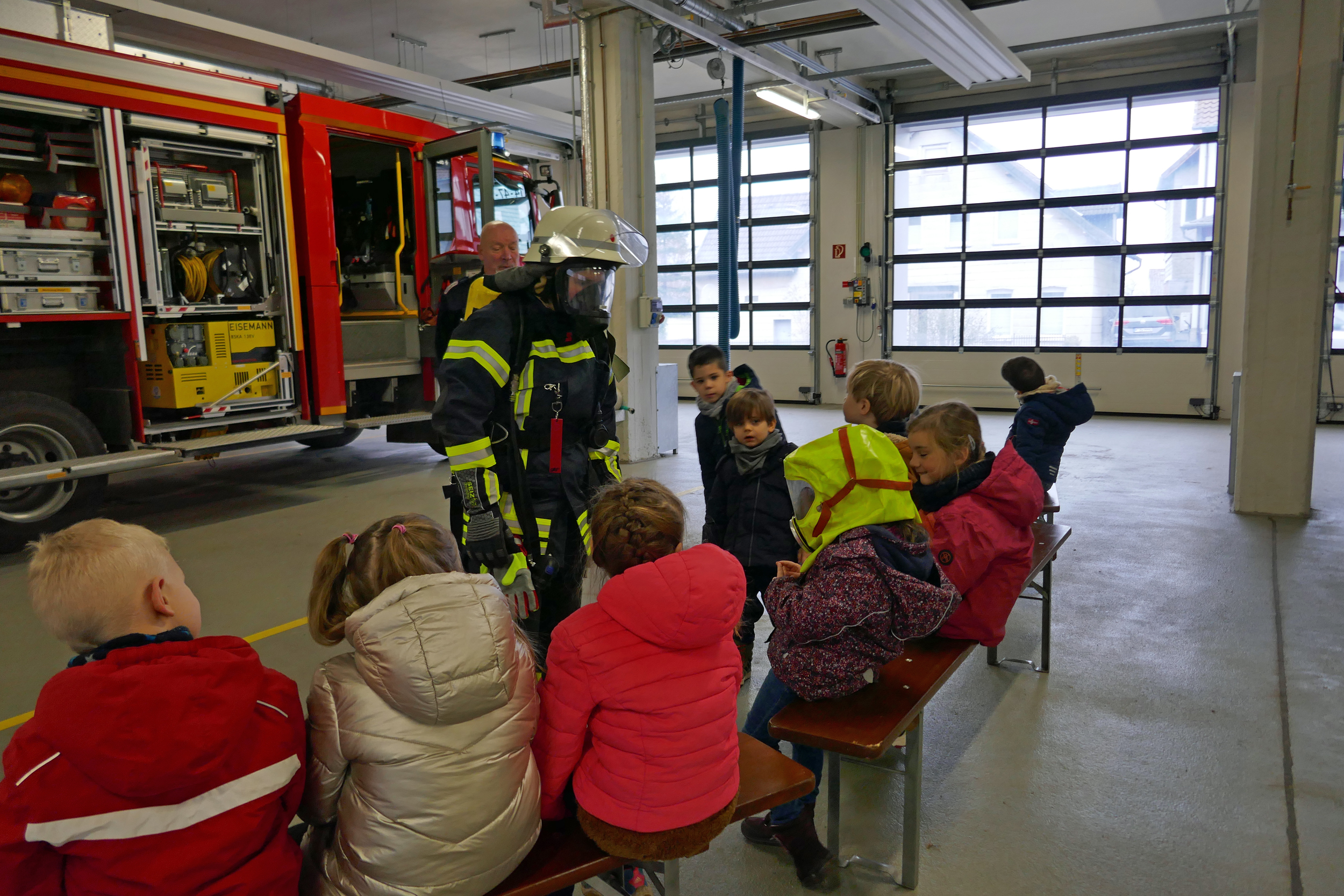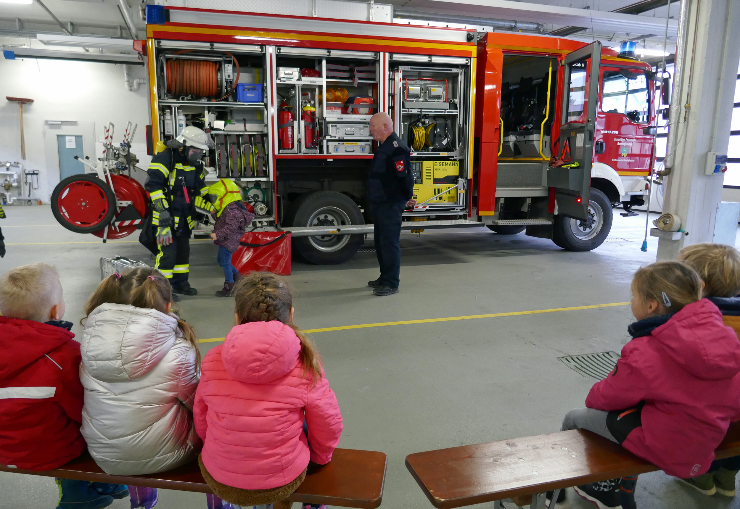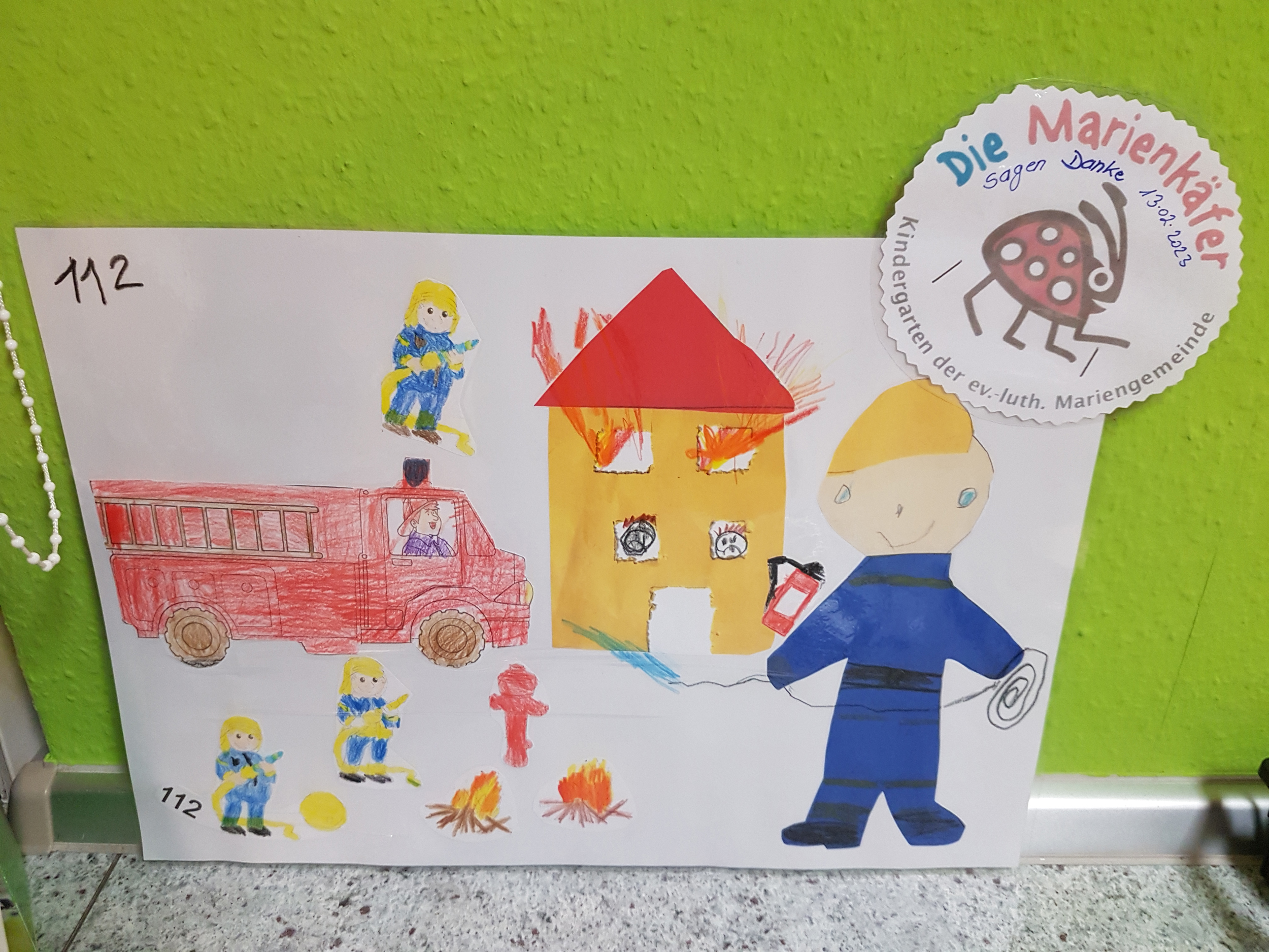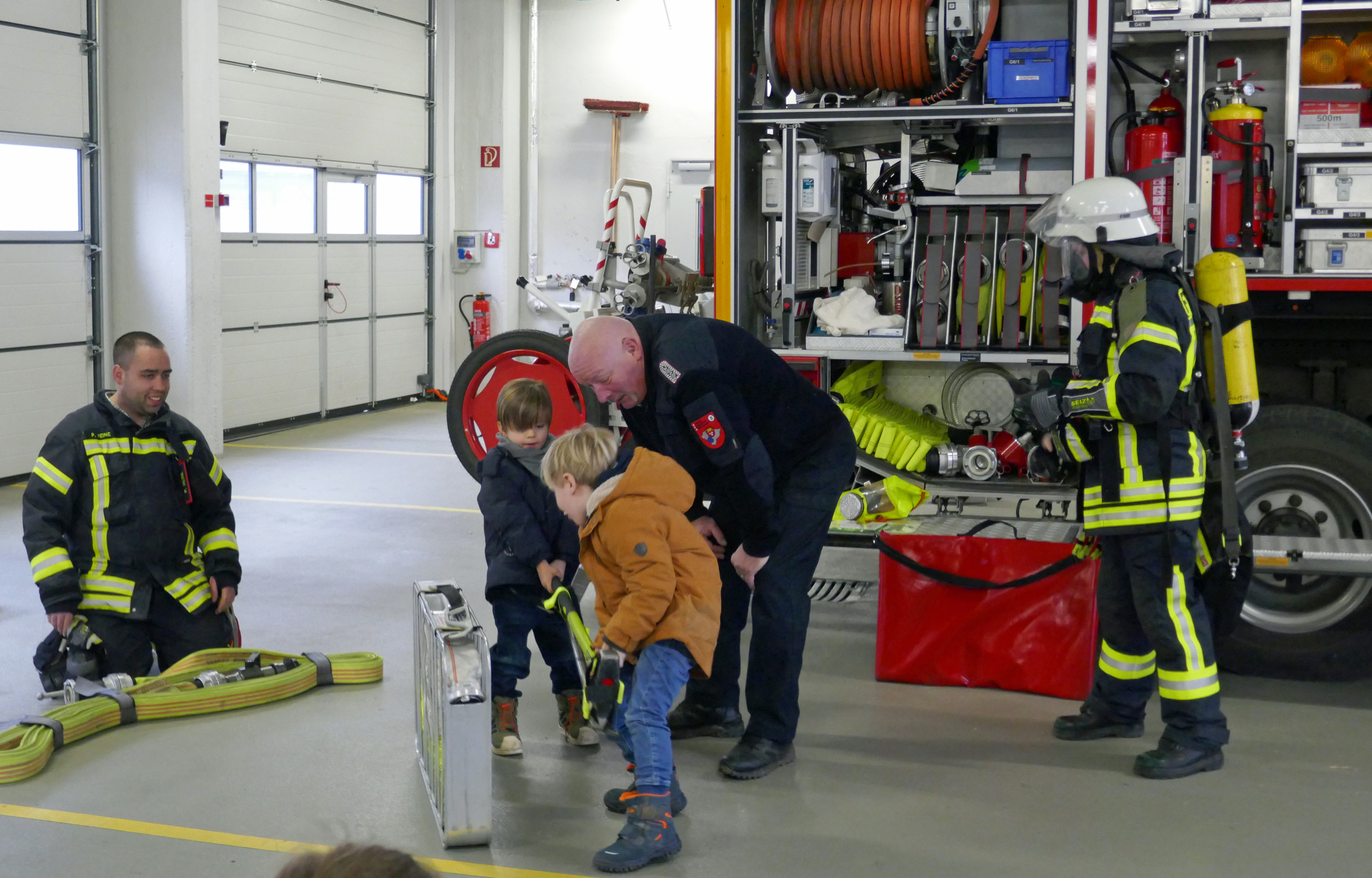 Ein spannender Vormittag liegt hinter den "Wackelzähnen", den größeren Kindern im Marienkäfer-Kindergarten in Barsinghausen. Im Rahmen des Projektthemas "Helfer und Retter in der Not" besuchten neun Jungen und Mädchen die Feuerwache an der Egestorfer Straße. Sarah Heine, Patrick Heine und Frank Mues von der Freiwilligen Feuerwehr erklärten die Aufgaben im Fall eines Einsatzes - und nahmen vor allem Ängste. So zog Sarah Heine die Atemschutz-Bekleidung an, mit der sie zum Beispiel Personen aus einem brennenden Haus retten würde. "Ihr braucht vor den Geräuschen, die die Atemluft macht, keine Angst haben. Und auch die Kappe, die ihr dann aufsetzt bekommt, schützt euch vor dem Rauch", erklärte Frank Mues. Und so war auch Marlene so mutig und setzte die Kappe mit Atemschutz auf. "Ganz wichtig ist es, dass ihr euch nicht in eurem Zimmer versteckt. Sondern dass ihr euch bemerkbar macht, dass ihr winkt, schreit", betonte Patrick Heine. Um Ängste abzubauen konnten die Kinder auch ein Feuerwehrauto ausführlich betrachten, die verschiedenen Gerätschaften anfassen oder auch mal versuchen, die schwere Ausrüstung hochzuheben, die zusätzlich noch mit der Atemschutzbekleidung getragen werden muss. "Feuerwehrleute müssen stark sein, egal, ob Mann oder Frau", sagte Frank Mues. Und auch gezaubert wurde beim Besuch der Feuerwehr: Die Handabdrücke der Kinder, die ganz fest gegen ein Feuerwehrauto drückten, wurden durch eine Wärmebildkamera sichtbar. "Überall, wo es warm ist, seht ihr helle Flecken. Und in euren Gesichtern seht ihr die dunkle Nase, die eher kalt ist", erklärte er. Zum Abschluss - nach Besichtigung der großen Drehleiter auf dem Hof der Feuerwehr - überreichten die Kinder mit Kiga-Leiterin Waltraud Papenburg und Sonja Lübke-Kluczny dem Team der FFW ein Bild als Dankeschön für den spannenden Vormittag. „Es ist toll, wie sich die Feuerwehrleute einsetzen für Menschen, die in Not sind“, so Waltraud Papenburg.