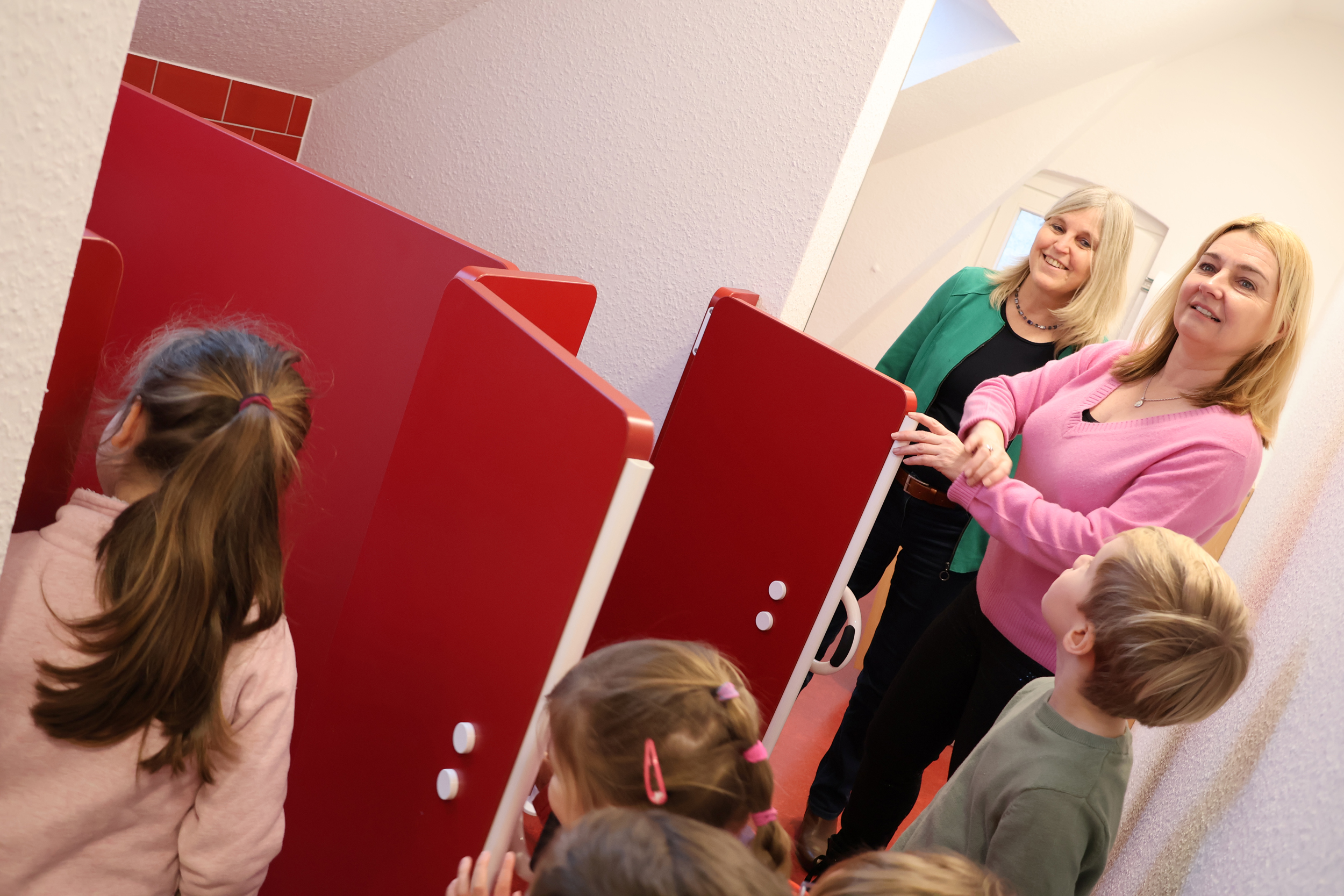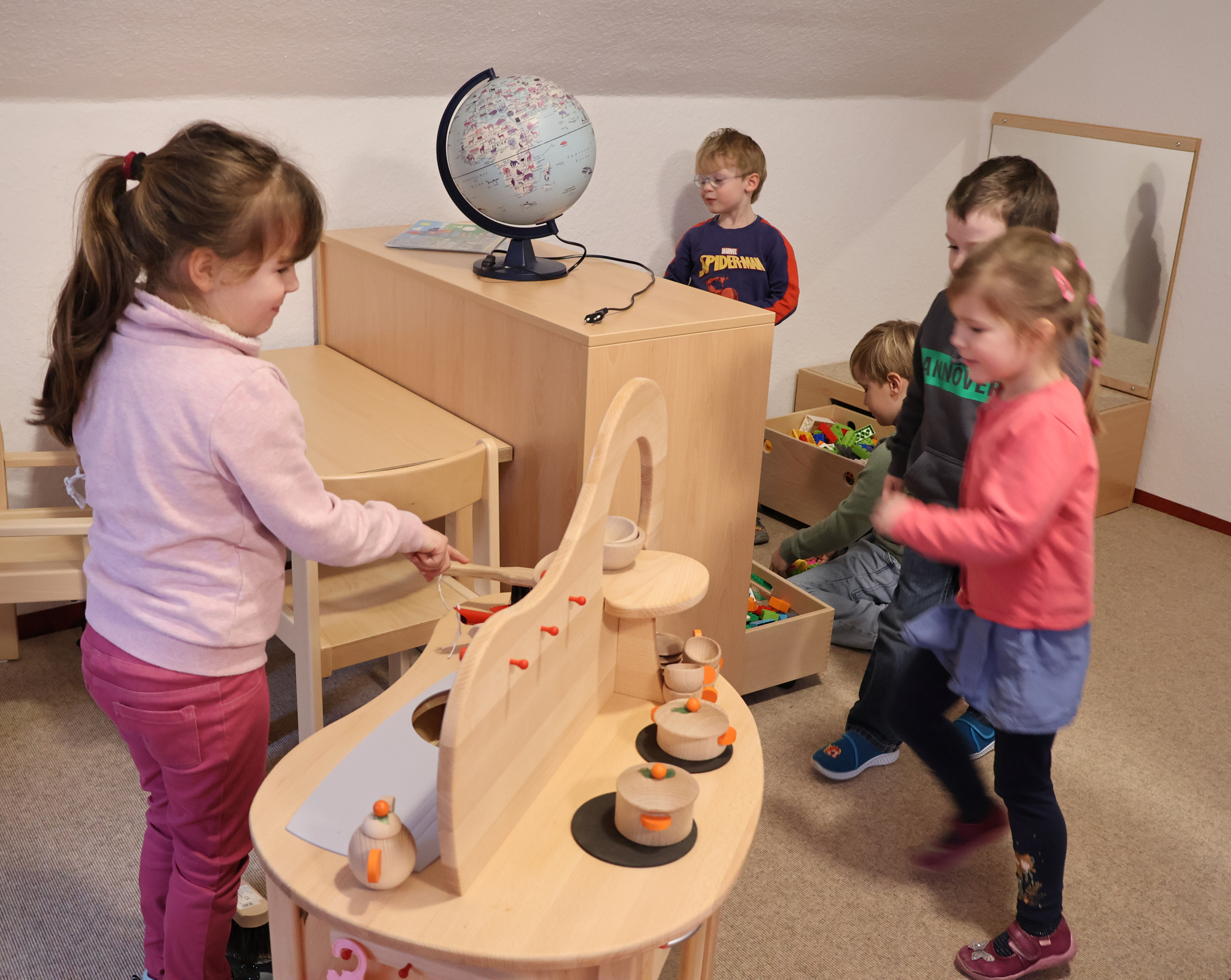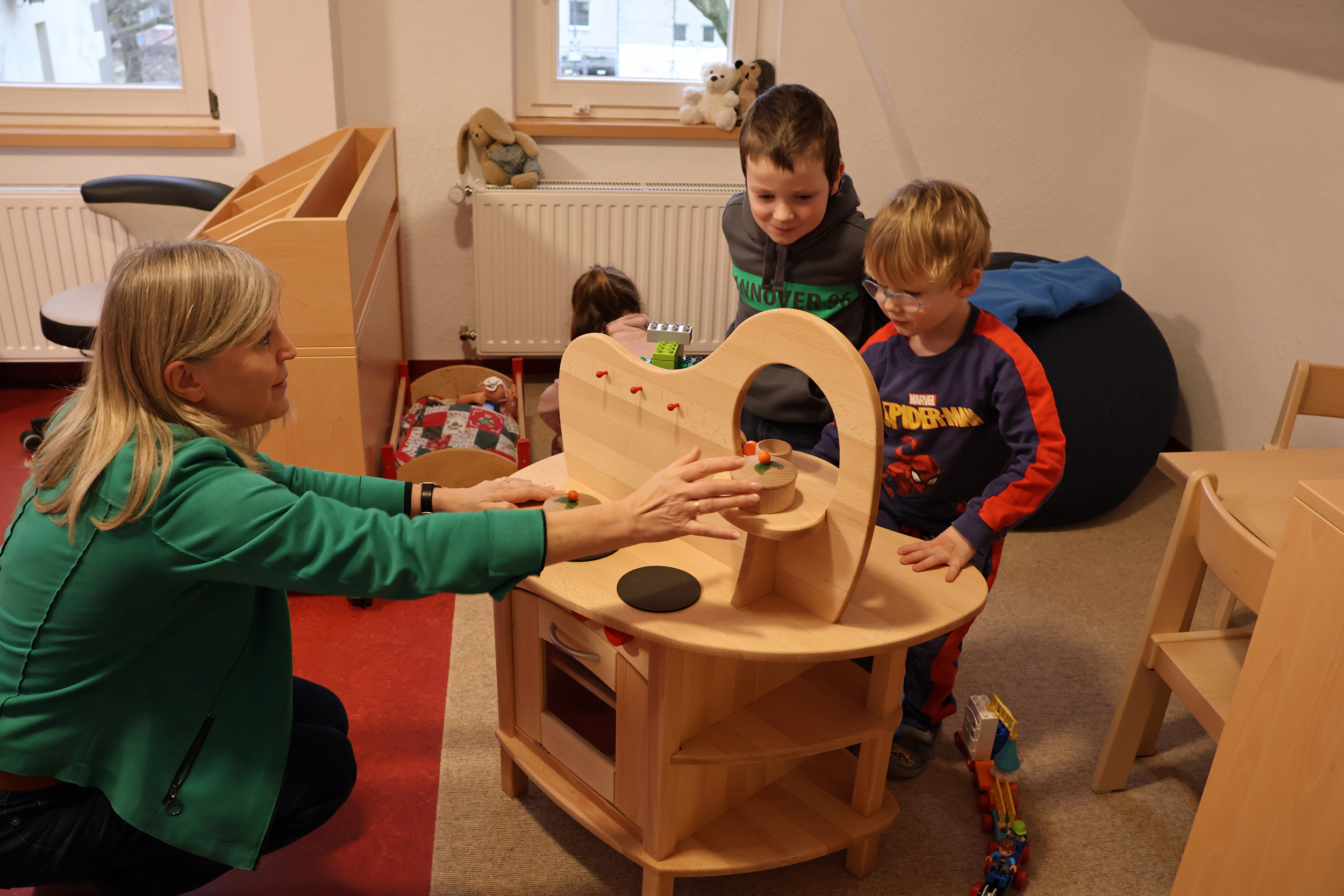 Die Spannung steigt - denn bald ist es so weit, und die erweiterten Kindergartenräume der "Marienkäfer" werden von 14 Kindern im Alter ab drei Jahren mit Leben gefüllt. Das Dachgeschoss, in dem früher unter anderem eine Küsterwohnung war, wurde nach Plänen von Architektin Meike Alonso umgebaut. "Im März wollen wir mit der Eingewöhnung für die ersten Kinder beginnen. Davor wird es einen Elternabend mit den neuen Eltern und den Eltern der bestehenden Gruppe geben, damit alle über die Veränderungen informiert werden können", erklärt Waltraud Papenburg, die Leiterin des Kindergartens im Gespräch mit Pastorin Uta Junginger. Begleitet wurden sie von fünf Kindern aus der bestehenden Gruppe im Erdgeschoss. "Wir gehen jetzt nach und nach mit kleinen Gruppen hier hoch, damit die Kinder auch sehen, was hier entstanden ist", sagt die Erzieherin, die mit allen durch die Räume geht. Schnell vertiefen sich die Jungen und Mädchen in das Spiel, bauen mit Duplo-Steinen, mit den Puppen oder der Spielküche. Dort wird fix ein "Restaurant" eingerichtet - und Uta Junginger bekommt den ersten Kräutertee serviert.