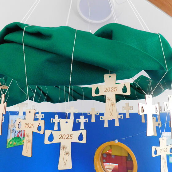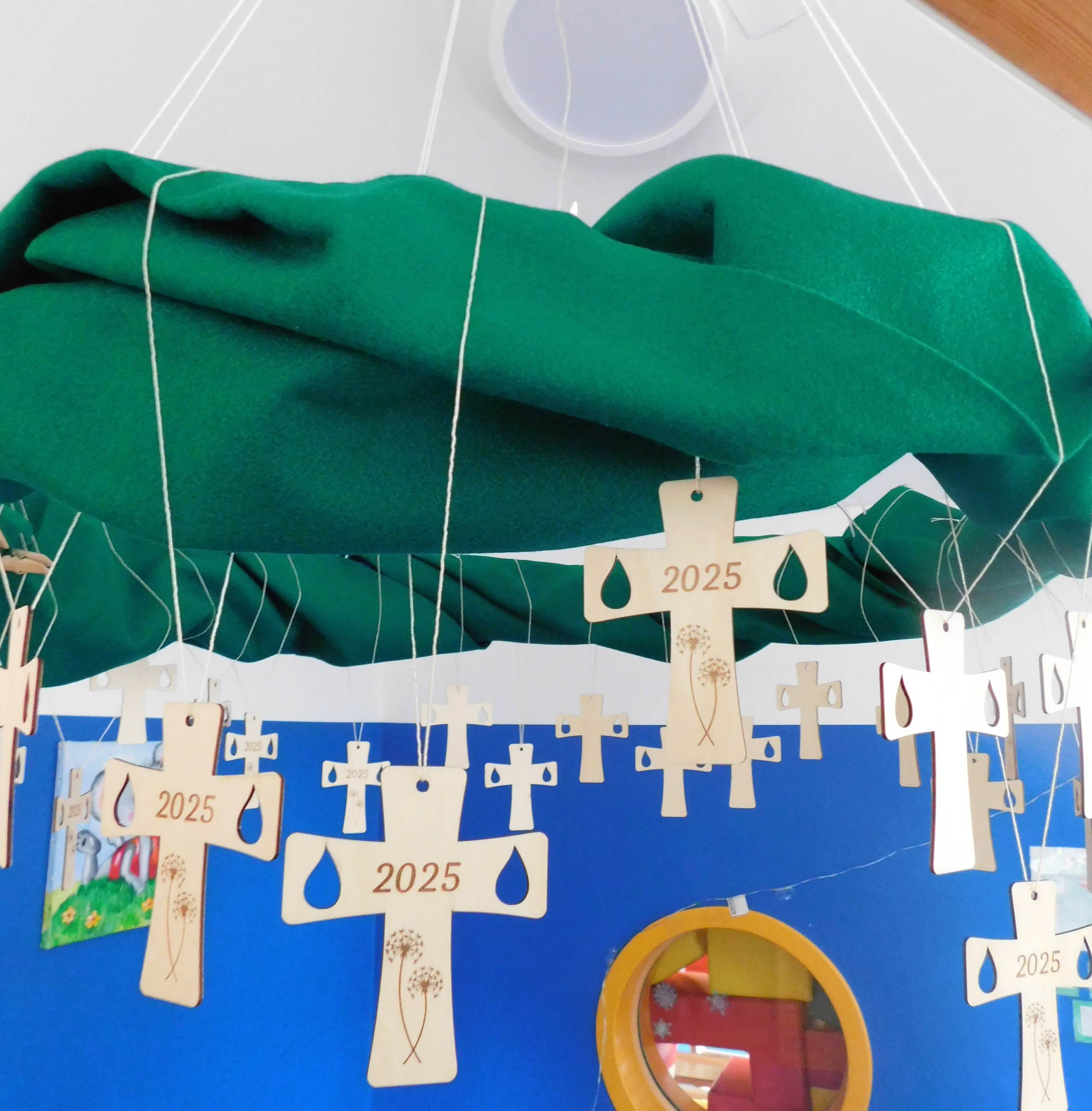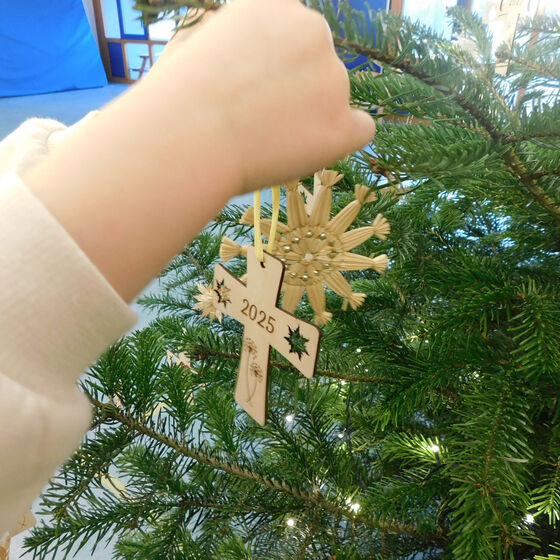 Unsere Kindergarten-Eltern haben uns pünktlich zur Adventszeit wieder mit einem Weihnachtsbaum überrascht, den die Kinder mit ihren Adventskalendertürchen schmücken konnten. Jedes Kind hat ein besonderes Holzkreuz erhalten, dass von einem Kindergartenvater hergestellt wurde. Passender hätte es für unser bevorstehendes Jubiläum nicht sein können.