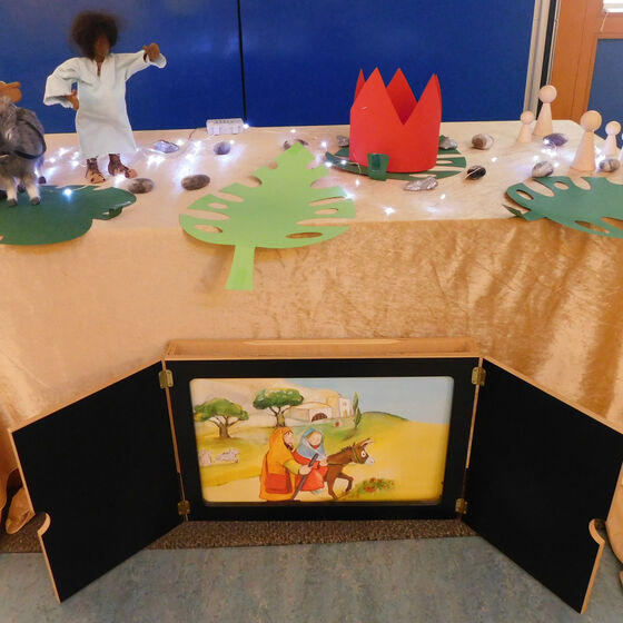 In der letzten Kindergartenwoche haben wir den Kindern die Weihnachtsgeschichte nähergebracht. Die Kinder konnten jeden Morgen gemeinsam sich mit Maria und Josef auf den Weg nach Bethlehem machen und so Stück für Stück die Weihnachtsgeschichte miterleben.